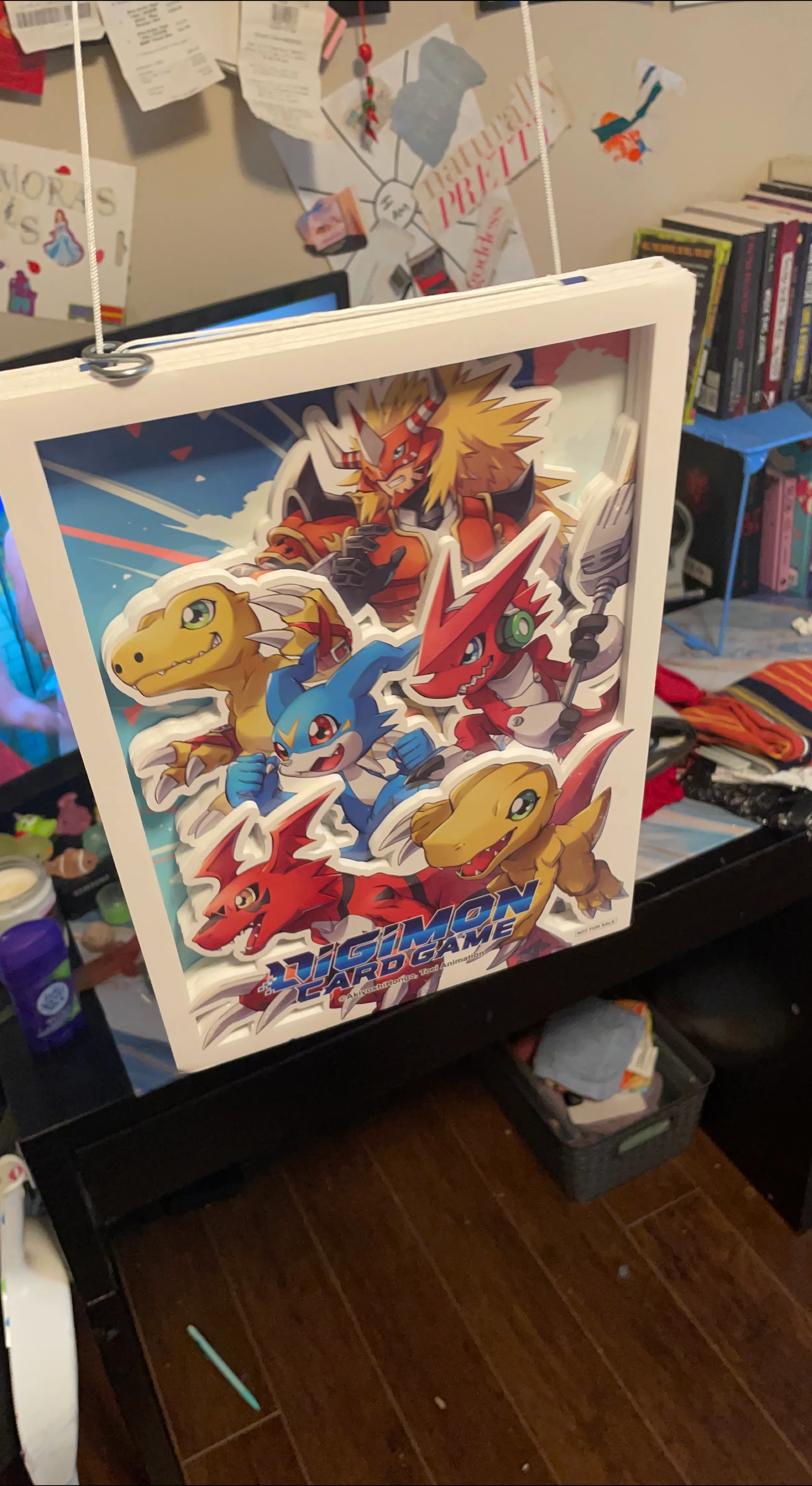 Selling a cool Digimon Card Game shadow box art piece! It features some of your favourite Digimon characters in a layered design. Perfect for any Digimon fan looking to add a unique piece to their collection or decor