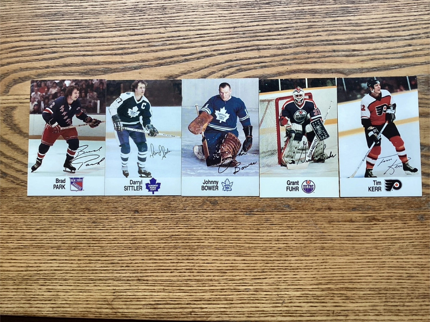 $10.00 for all 5 cards - JOHNNY BOWER, DARRYL SITTLER, BRAD PARK, GRANT FUHR & TIM KERR - All clean & in MINT condition - Shipping available - Located at Pape ave & Cosburn ave Toronto - Call Patrick @ 416-930-8338.