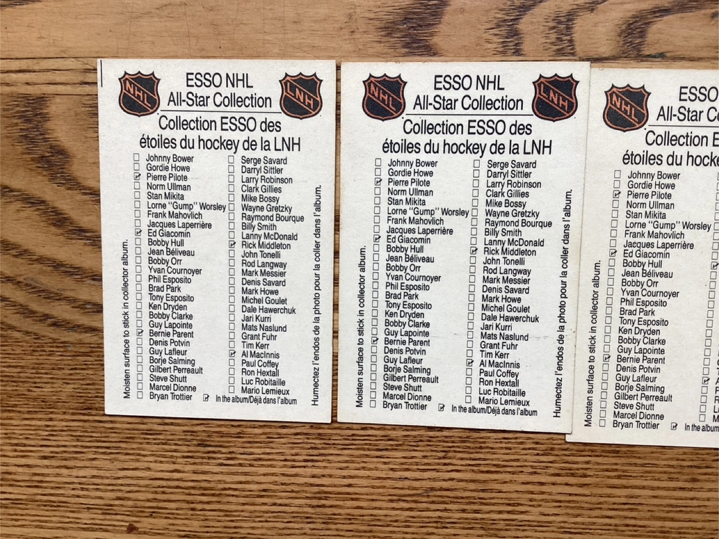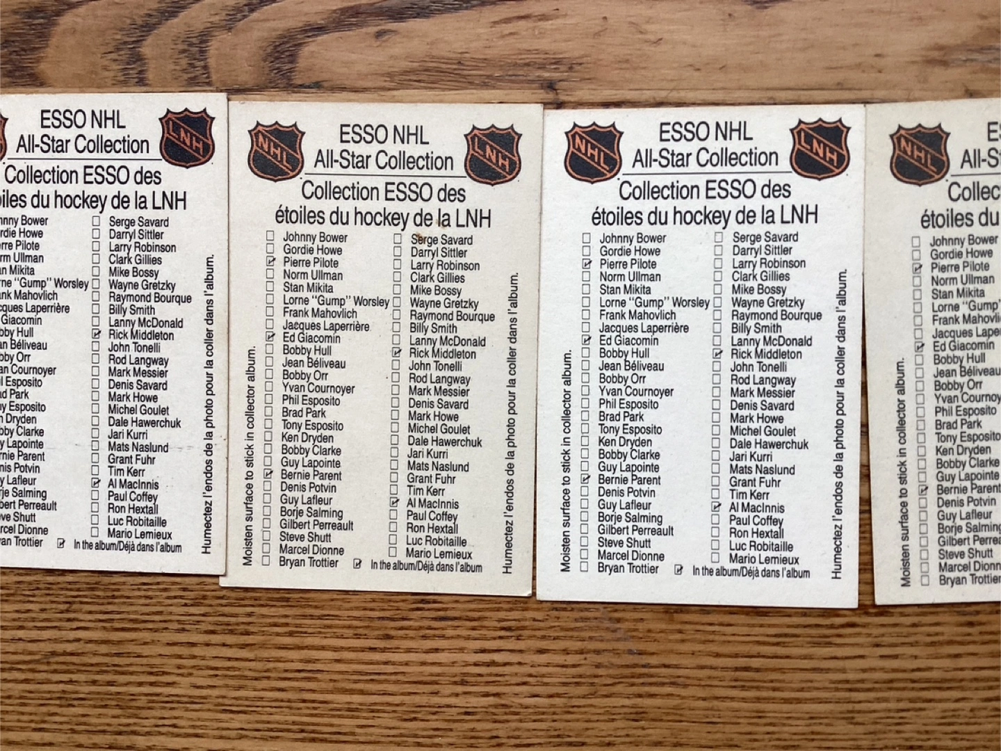 5. 1988-89 ESSO ALL-STARS NHL Cards #’s 4,404, 34, 12 & 44