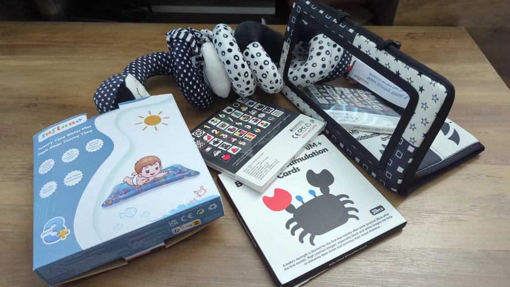 Selling a set of baby items including an Infinno Tummy Time Water Mat and some baby toys! The water mat is great for tummy time and sensory development. Also included are baby visual stimulation cards, one is sealed pack. Also included is
