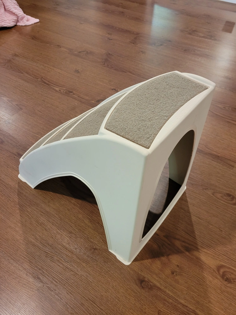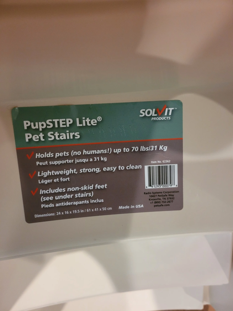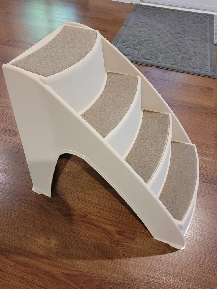 These Solvit PupSTEP Lite pet stairs are perfect for helping your furry friend reach higher places! They can hold pets up to 70 lbs (31 kg). These stairs are lightweight, strong, and easy to clean. The dimensions are 24 x 16 x 19.5 inches (61 x 41 x 50 cm) and includes non-skid feet for added safety
