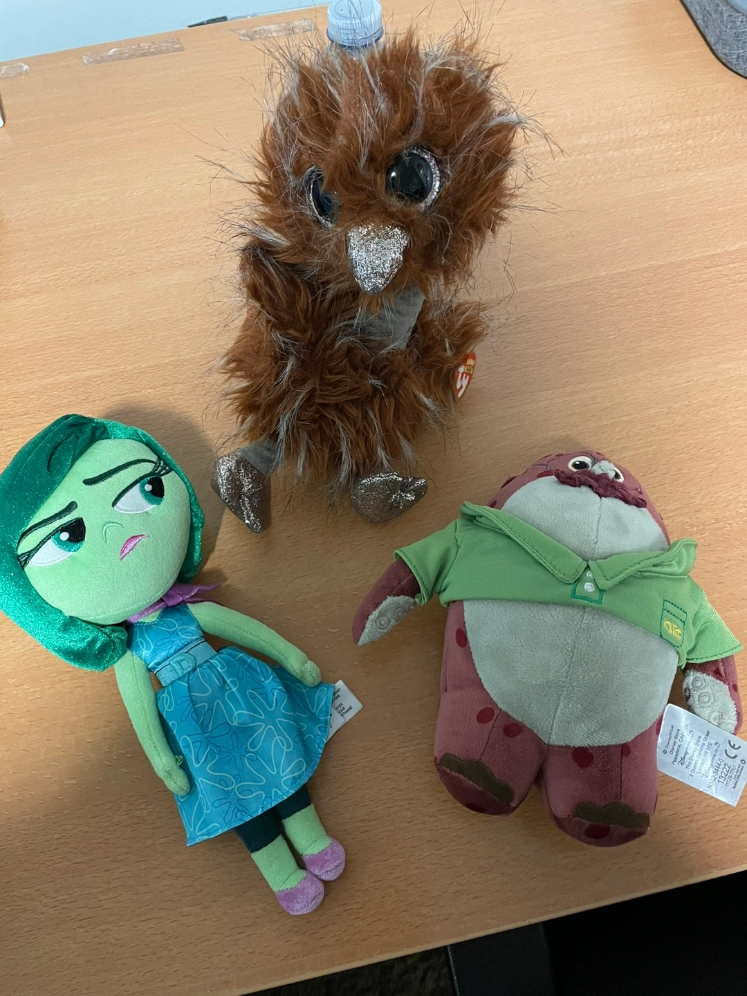 Selling two cute plushies! One is a Disgust plush from Disney's Inside Out, and the other is an Orson Beanie Boo. Both are in good condition and ready for a new home!