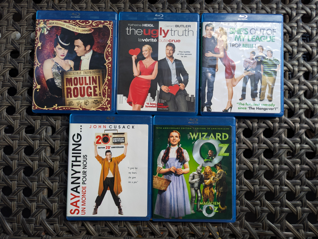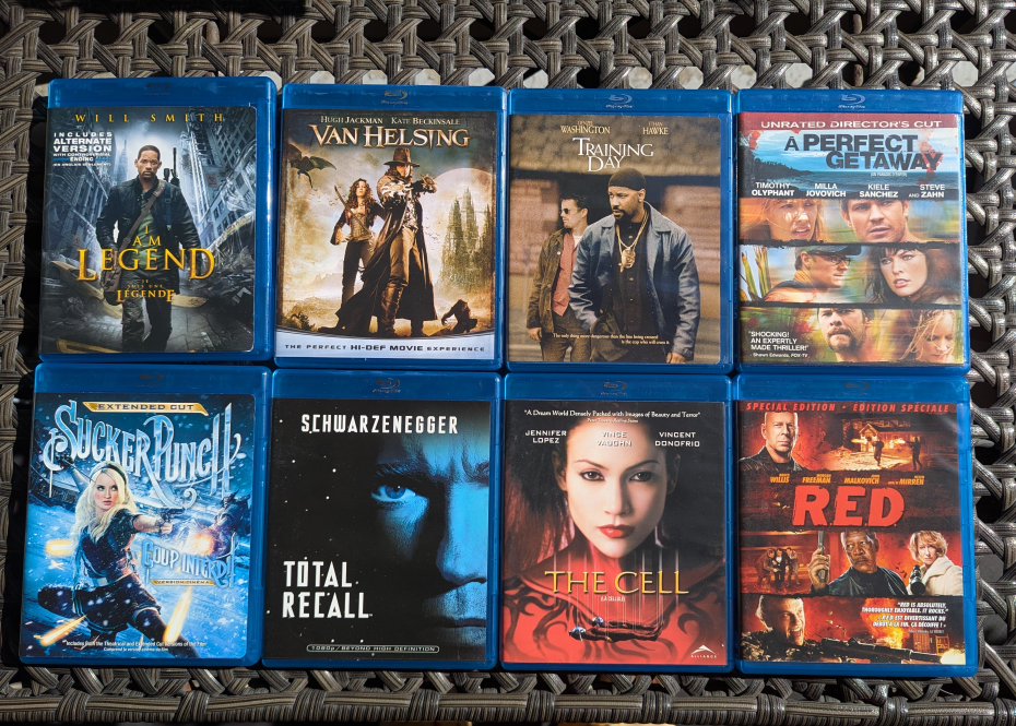 Selling a collection of Blu-ray movies. Titles include Moulin Rouge, The Ugly Truth, She's Out of My League, Say Anything, The Wizard of Oz, I am Legend, Van Helsing, Training Day, A Perfect Getaway, Sucker Punch, Total Recall, The Cell, and RED. All in great condition!