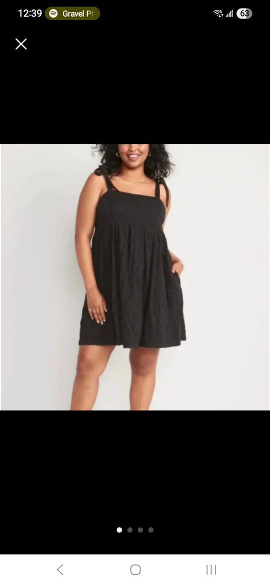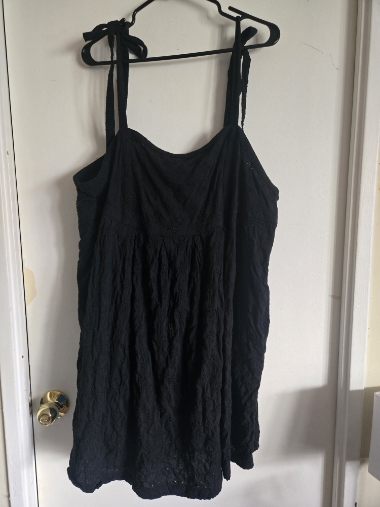 A cute black dress from Old Navy! It features tie straps and a textured fabric. Perfect for a casual outing or dressing up with accessories. has pockets! Size 2X.