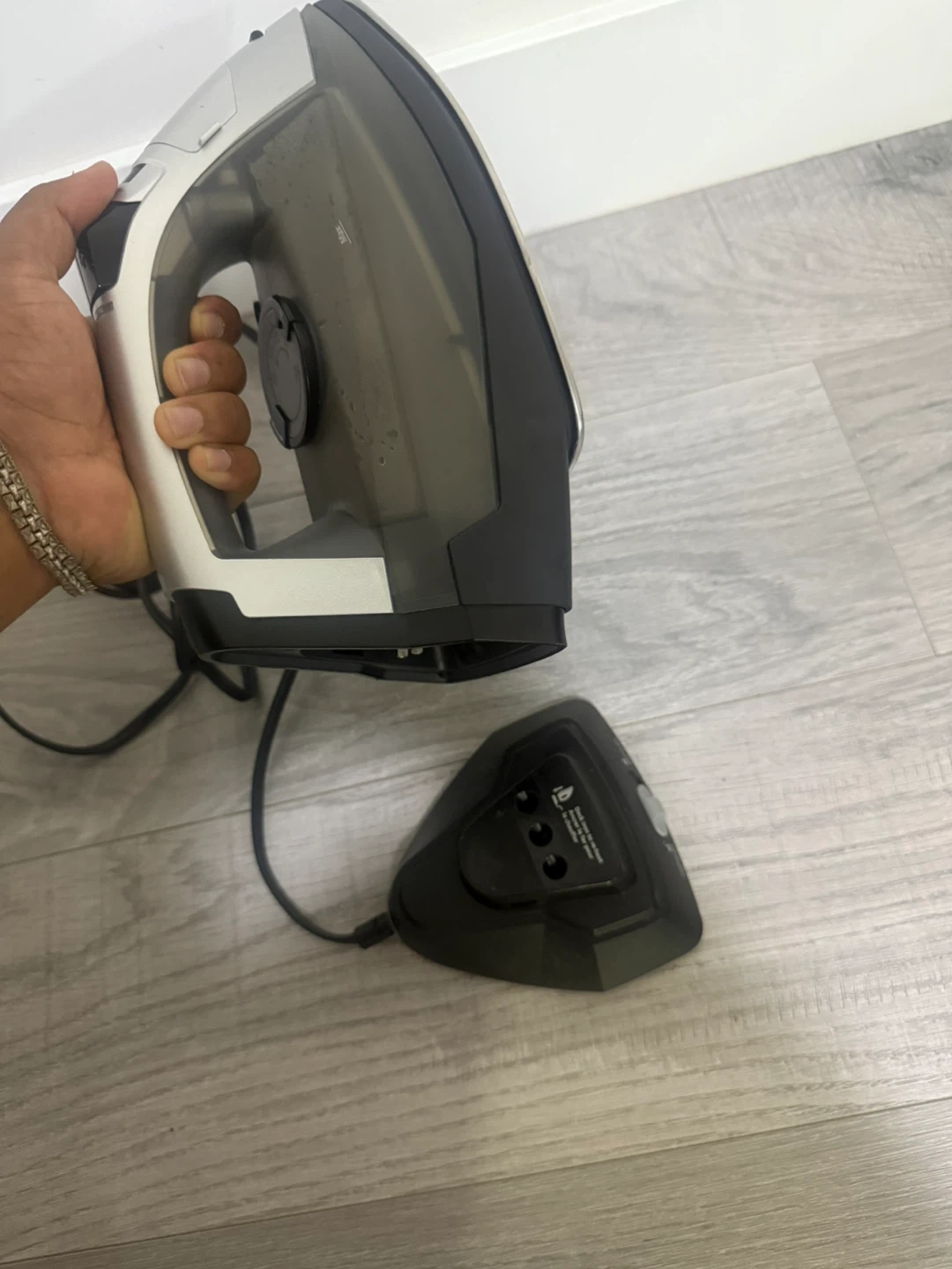 Selling a Sunbeam cordless iron, model GCSBNC-101-033. It's a cordless iron, so it's super convenient to use without being tethered to an outlet. The iron comes with its charging base.
