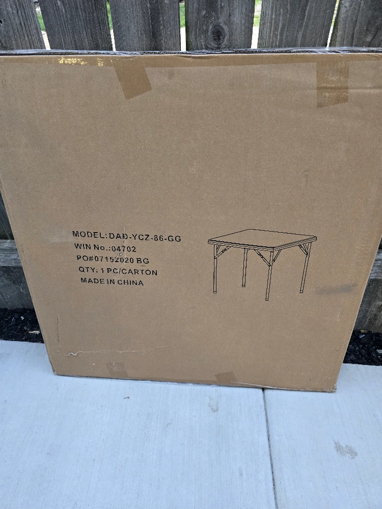 Selling a brand new, still-in-box DAD-YCZ-86-GG folding table! It's a convenient and sturdy table, perfect for indoor or outdoor use. The table is white with gray legs. Ready for easy setup and storage!