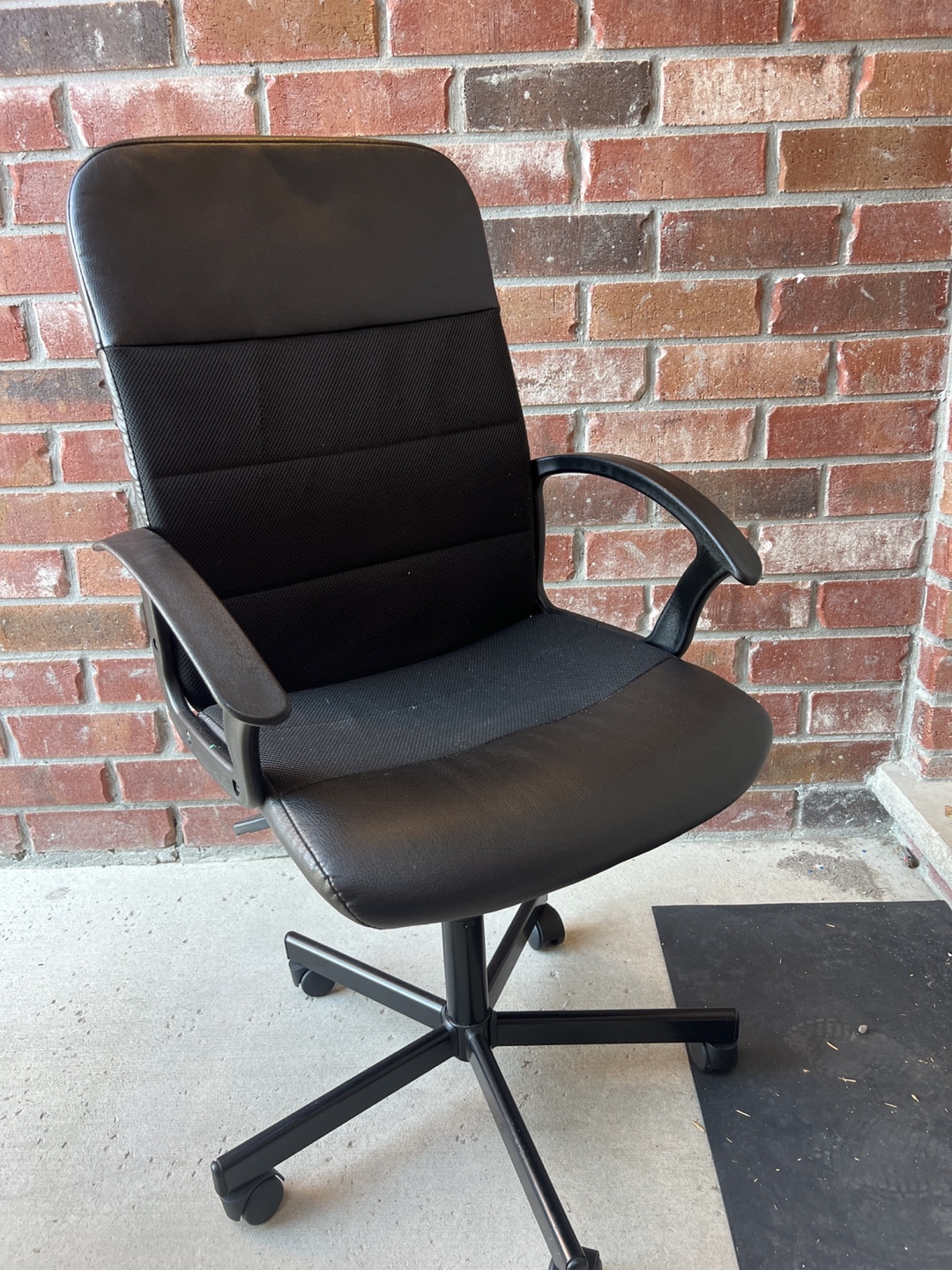 1 / 11 / 1Buy & SellOffice Chair - BlackOffice Chair - Black$20Here's a black office chair in good condition. It has a black leather seat and a mesh back. Perfect for your home office!ConditionGoodWHERE TO MEET25 tobias laneView MapSELLERverifiedJaydenBarrie South GO832 reviews1 chats·0 favorites·18 viewsSEND CHAT TO SELLERHi Jayden! I’m interested in your listing.Hi Jayden! I’m interested in your listing.Get the Karrot app to chatSign In to chat