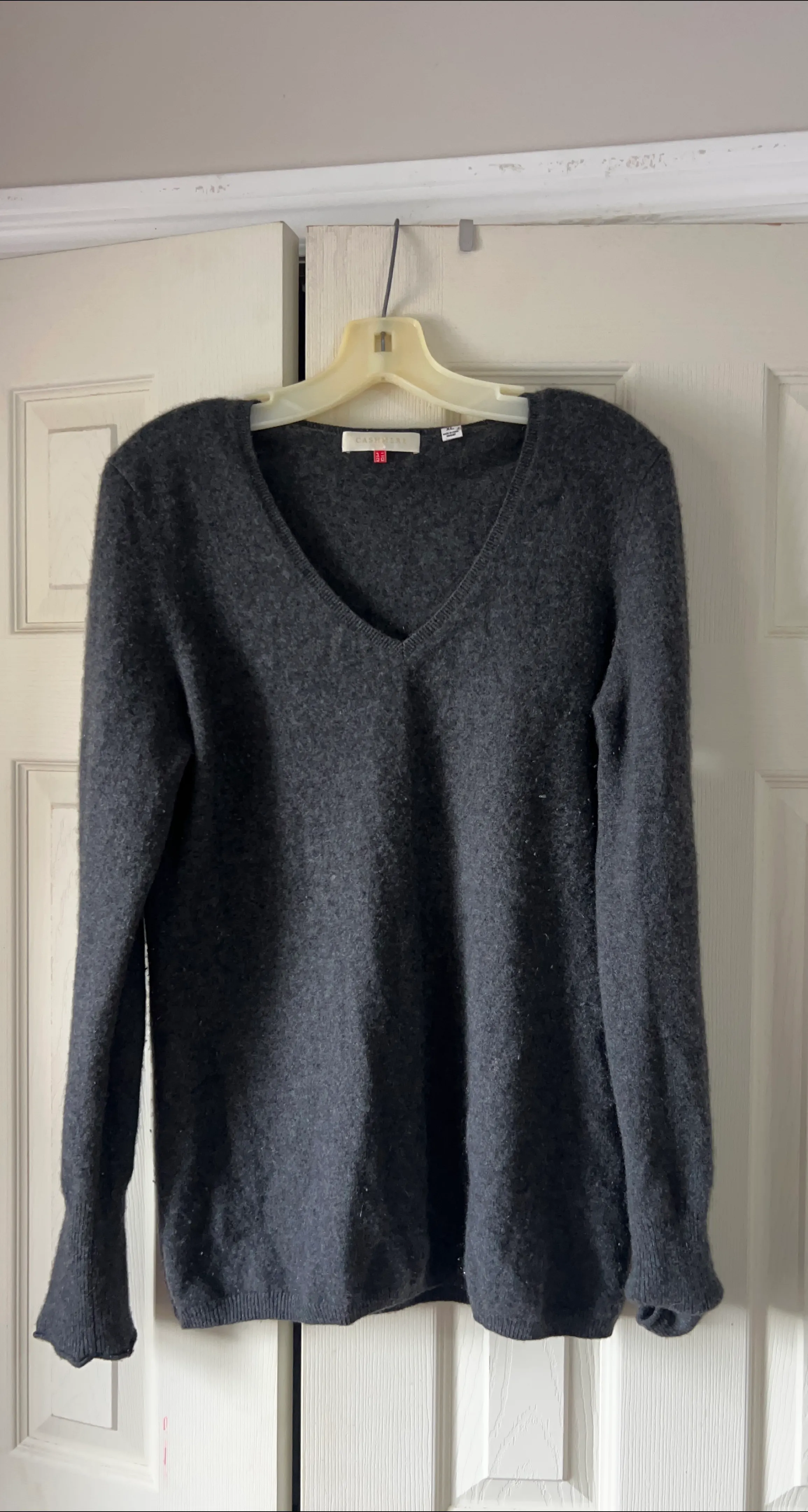 Here's a cozy Equipment Femme sweater in size medium! It's a lovely grey colour and made of soft cashmere. It's in great condition, ready to keep you warm and stylish.