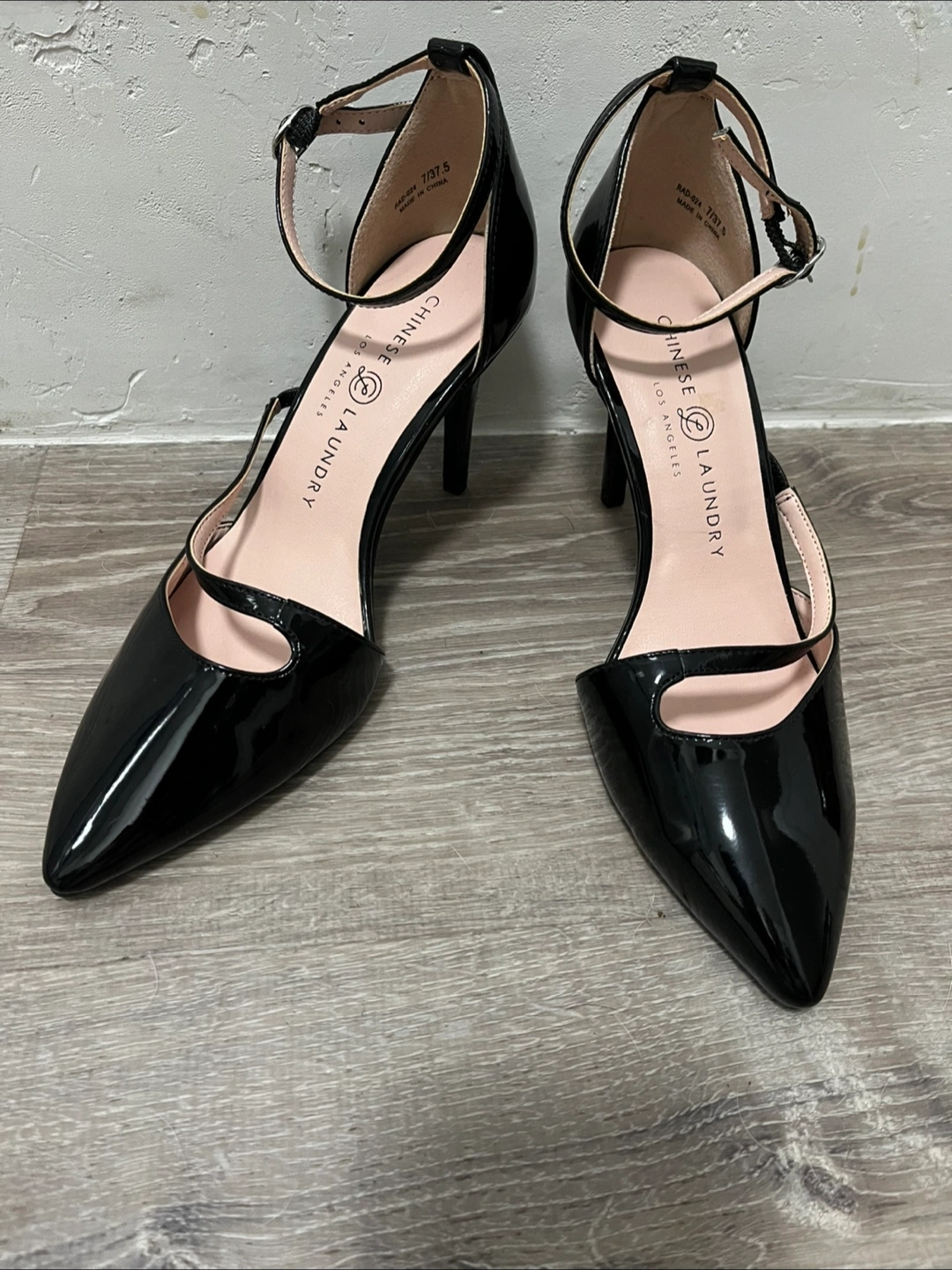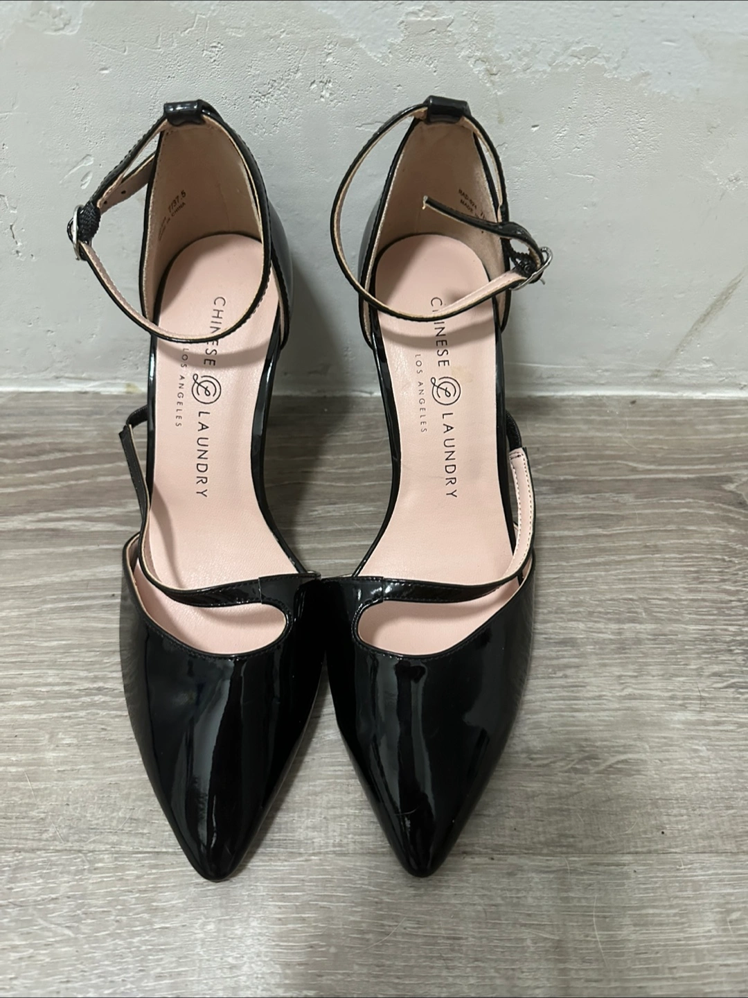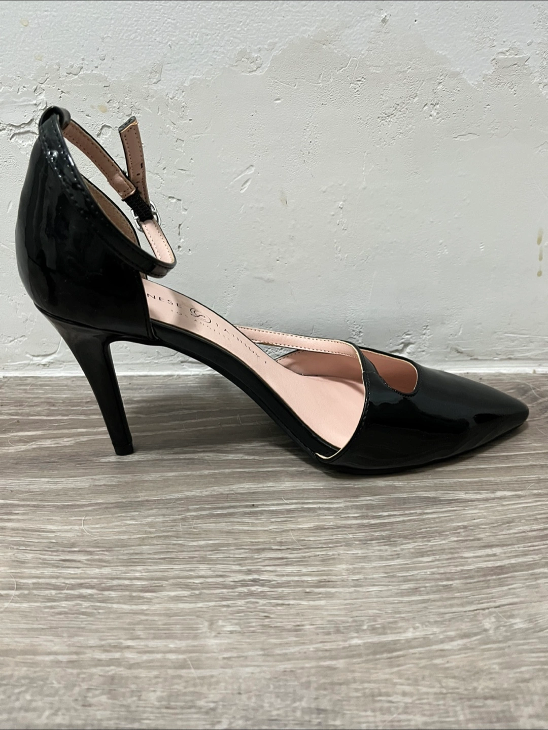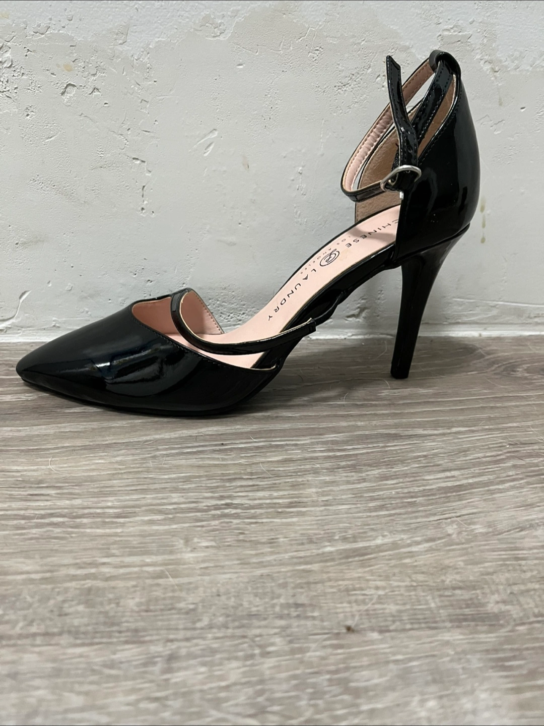 New Chinese Laundry heels in size 7. Black patent leather , ankle strap, heel is 3.5 “