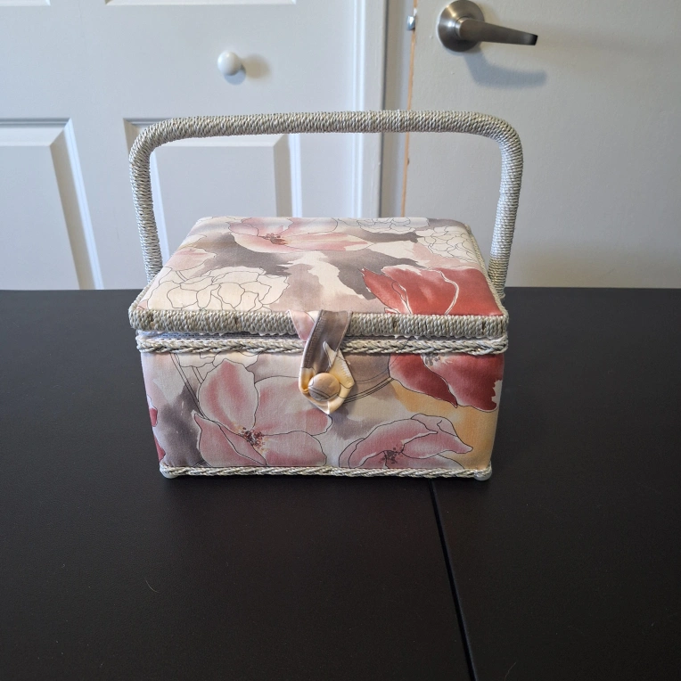 Selling a handy sewing kit basket that's perfect for all your mending and crafting needs! It comes with a variety of supplies to get you started on your next project. It includes thread, needles, measuring tape, scissors, and more!