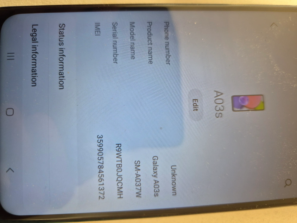 Selling a Samsung Galaxy A03s, model number SM-A037W. It's in good condition and ready for a new home! Feel free to reach out if you have any questions