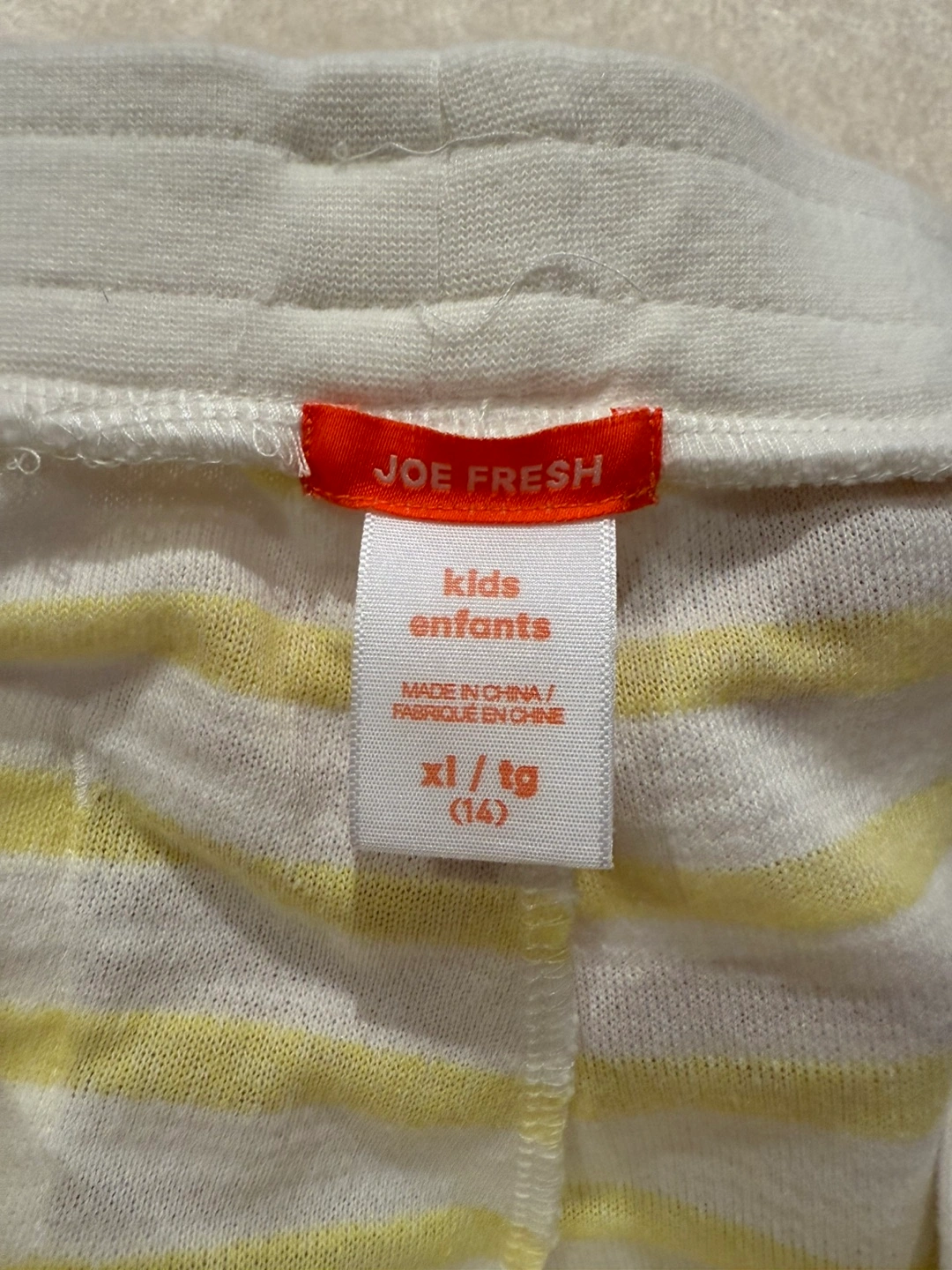 These Joe Fresh kids shorts are perfect for summer! They're a size XL (14) and feature a cute yellow and white striped pattern. Great for playdates or just lounging around.