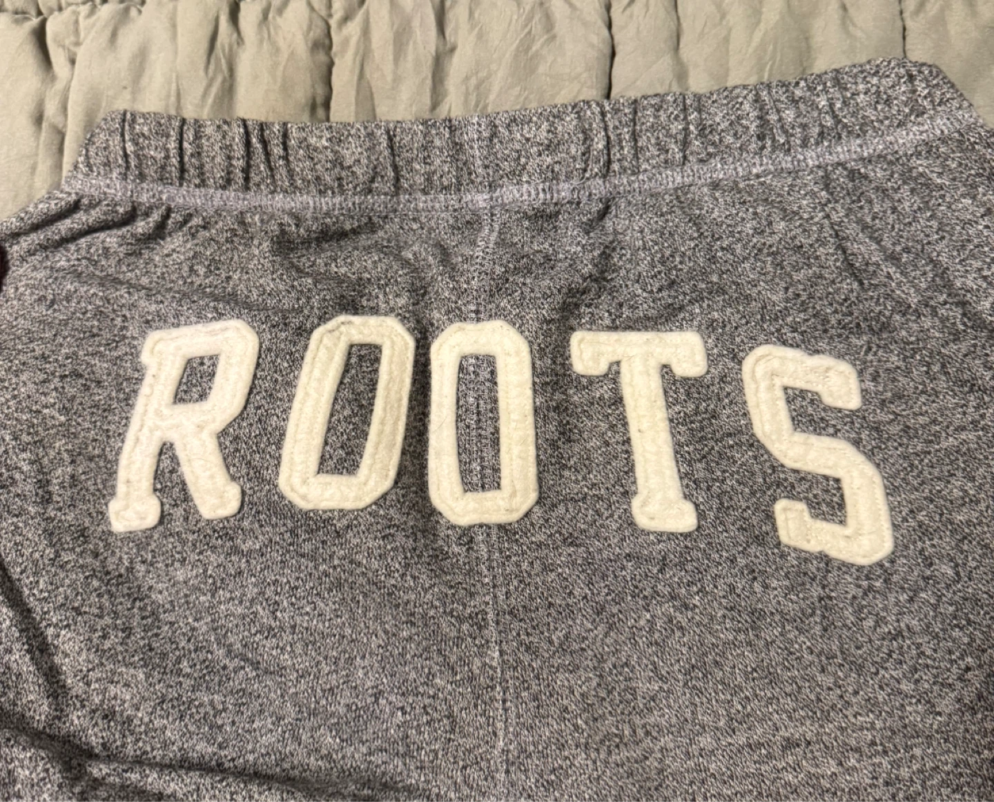 Cozy up with these Roots sweatpants! They're in a classic salt and pepper colour and a size XS. Perfect for lounging around, there super comfy!