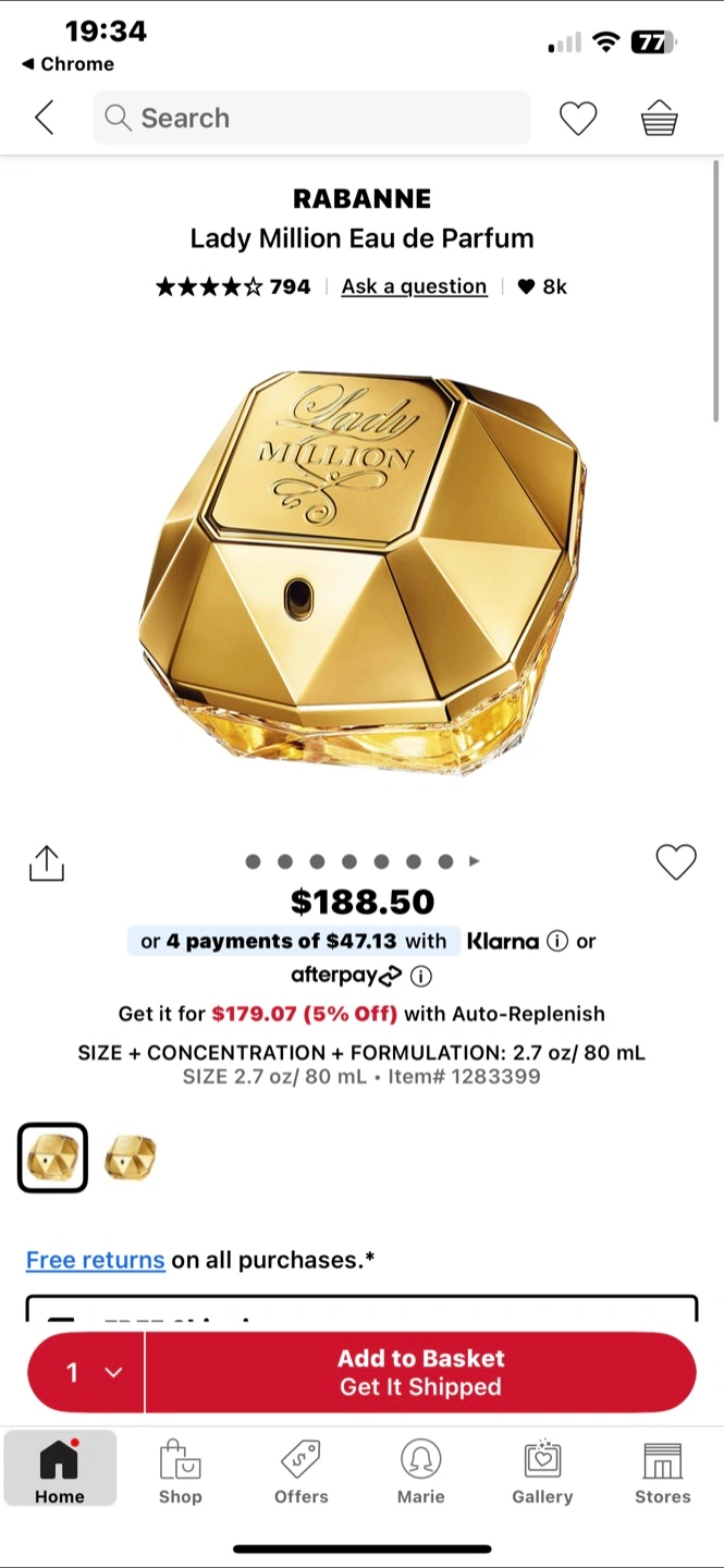Selling a bottle of Paco Rabanne's Lady Million Eau de Parfum! It's a beautiful fragrance. Some few spray missing