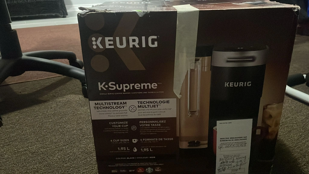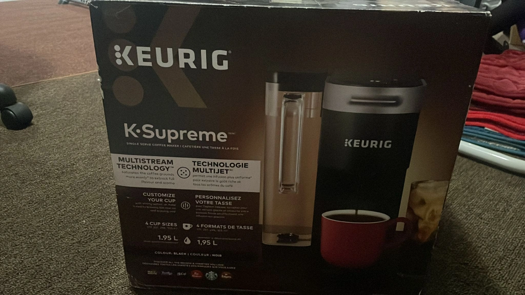 I am selling a brand new Keurig K-Supreme coffee maker, perfect for brewing your favorite beverages with ease and convenience. This single serve coffee maker features multi-stream technology and customizable settings to tailor each cup to your liking. The box has some cosmetic damage from storage.