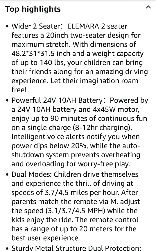 Get ready for some fun with this ELEMARA 24V 10AH 2 Seater Ride on Toy! It's perfect for kids who love adventure. $200