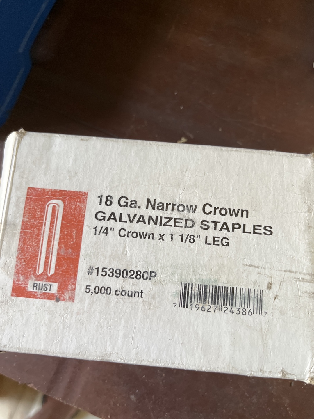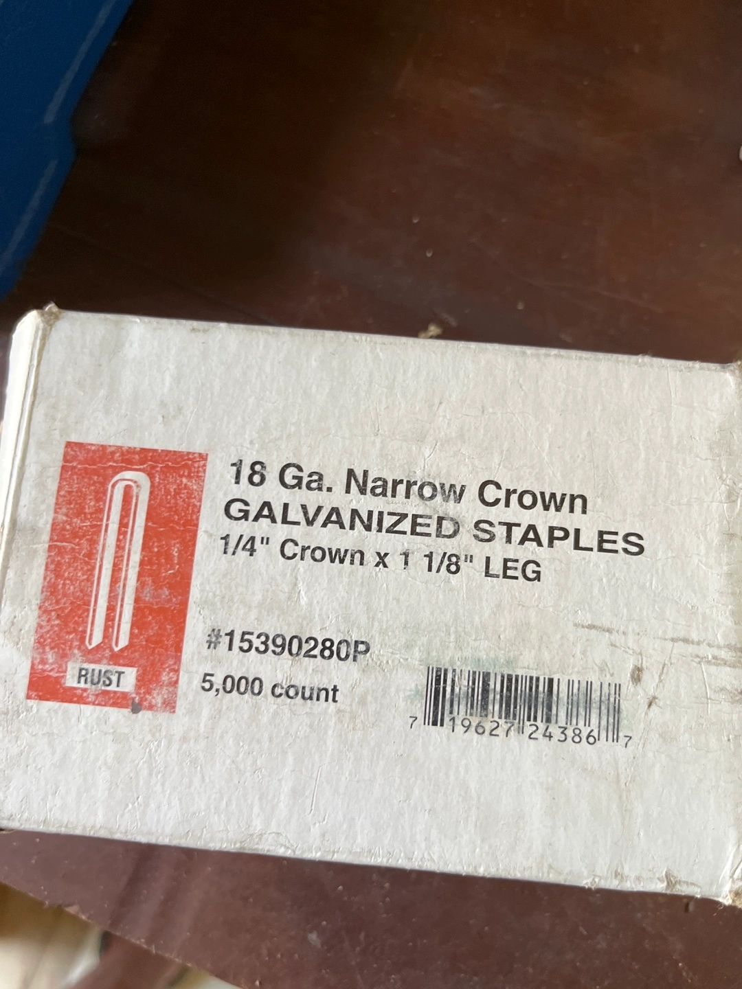Selling a box of 18 Ga. Narrow Crown Galvanized Staples. They are 1/4" Crown x 1 1/8" LEG and there are 5,000 in the box