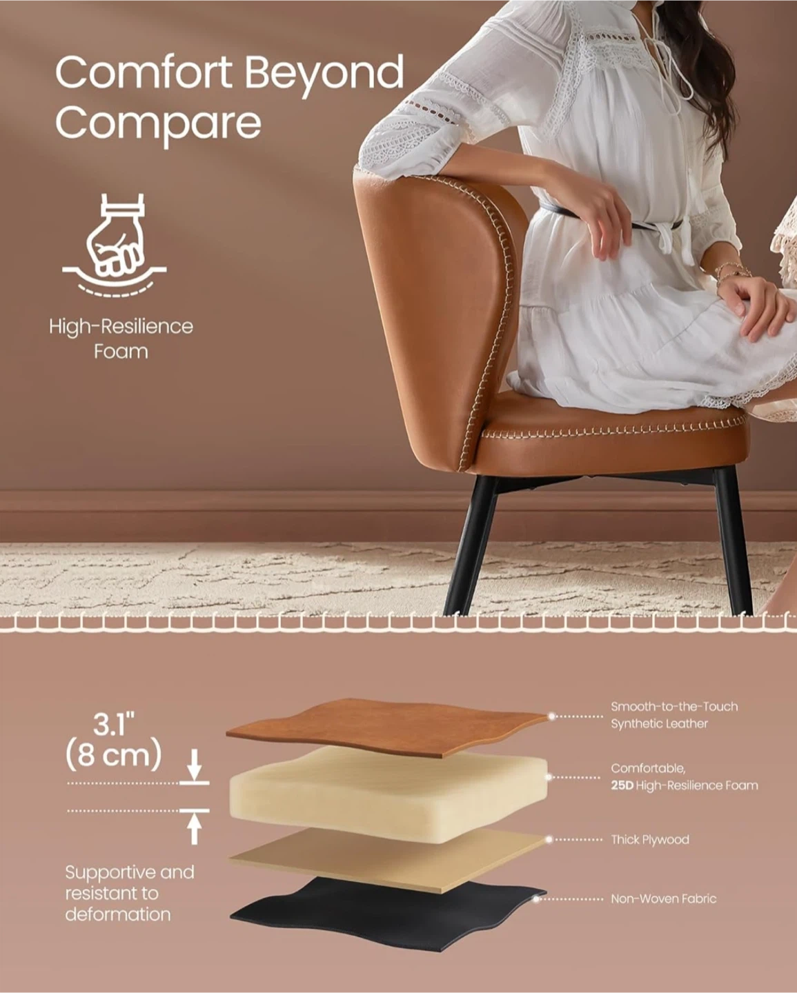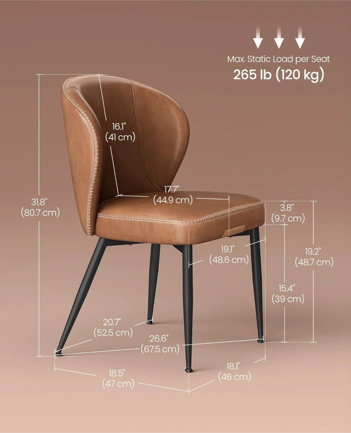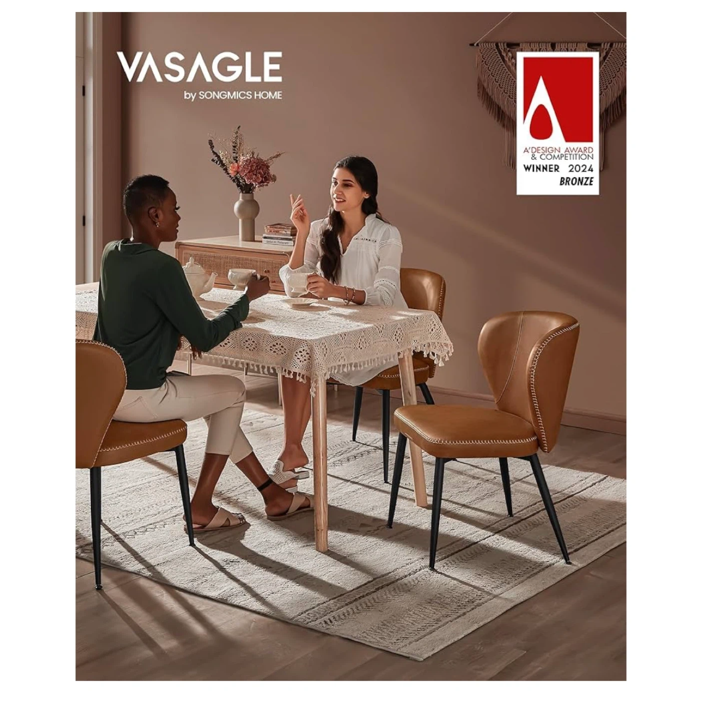 Brand New in Box VASAGLE EKHO Collection - Dining Chairs Set of 2, Upholstered Kitchen Chairs, Comfortable Seat, Synthetic Leather with Stitching, Mid-Century Modern, Easy Assembly, Living Room Lounge, Caramel Brown Selling a set of two VASAGLE EKHO Collection dining chairs in caramel brown. These chairs feature a comfortable seat with synthetic leather and stitching. They have a mid-century modern design and are easy to assemble. Originally bought for $229.99