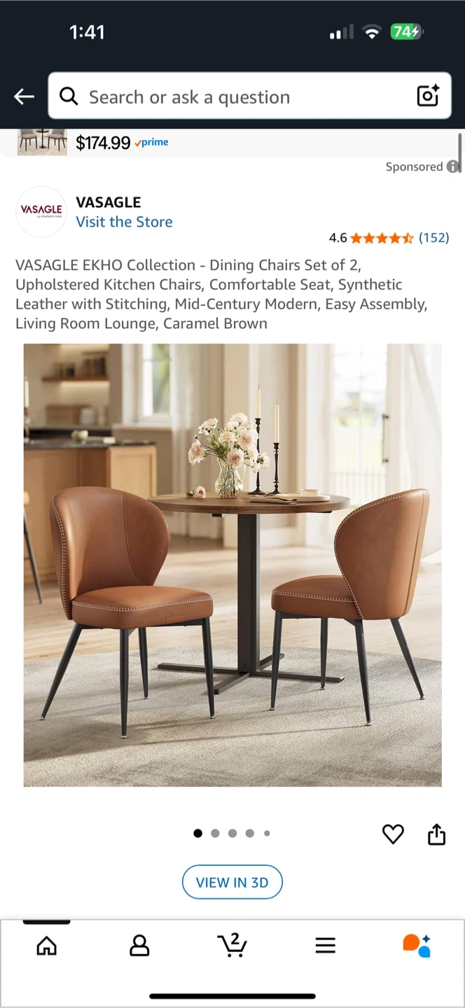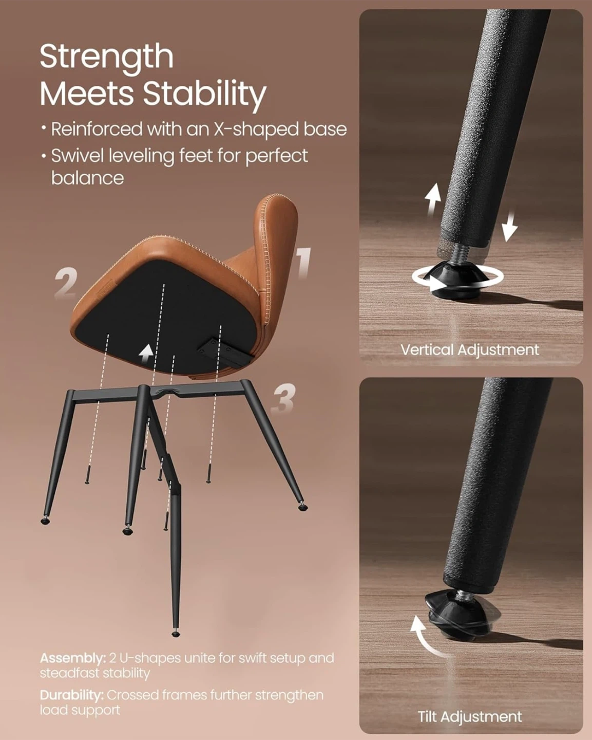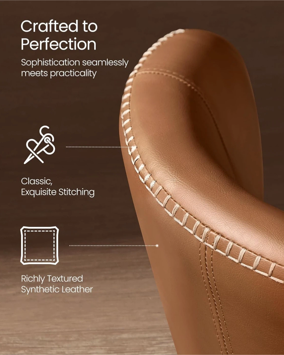 Brand New in Box VASAGLE EKHO Collection - Dining Chairs Set of 2, Upholstered Kitchen Chairs, Comfortable Seat, Synthetic Leather with Stitching, Mid-Century Modern, Easy Assembly, Living Room Lounge, Caramel Brown Selling a set of two VASAGLE EKHO Collection dining chairs in caramel brown. These chairs feature a comfortable seat with synthetic leather and stitching. They have a mid-century modern design and are easy to assemble. Originally bought for $229.99