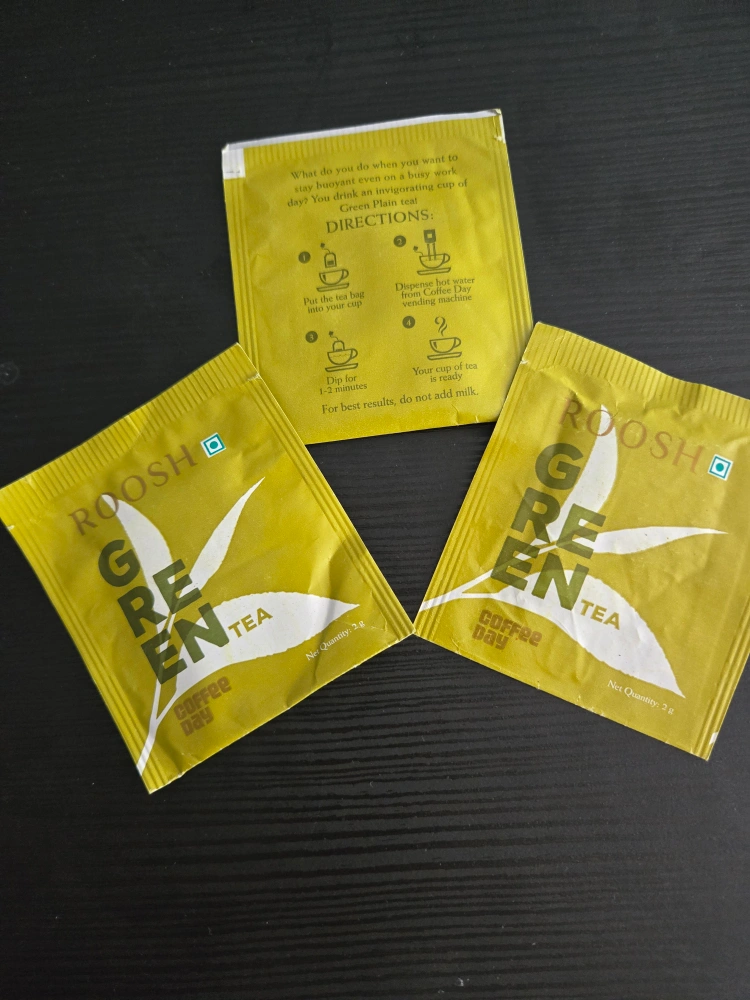 Selling individual packets of Roosh Green Tea from Coffee Day! Each packet contains 2g of green tea. Perfect for a quick and invigorating cup on a busy day! Just steep for 1-2 minutes and enjoy