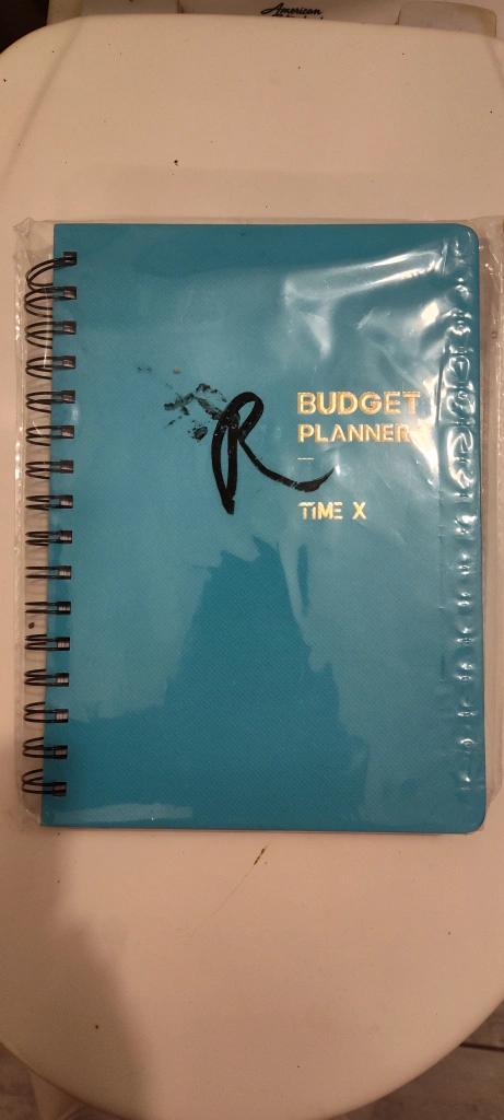 135Budget Planner from Time X! It's a spiral-bound notebook-style planner to help you keep track of your finances. It's still sealed in its original packaging, so it's in new condition!