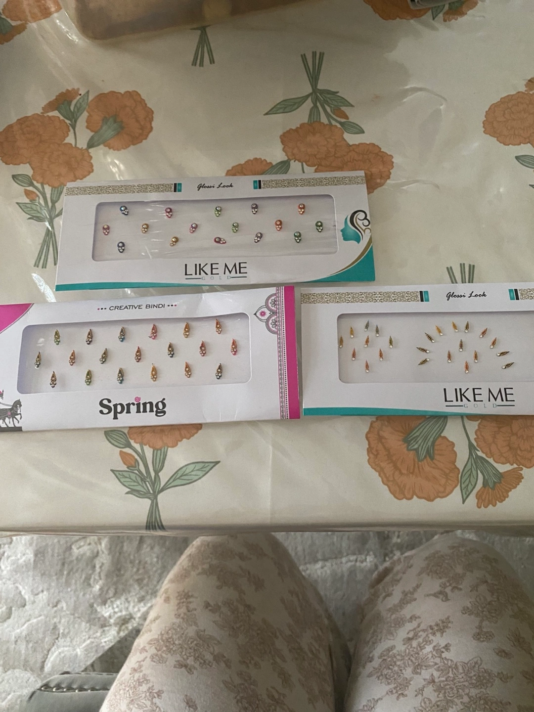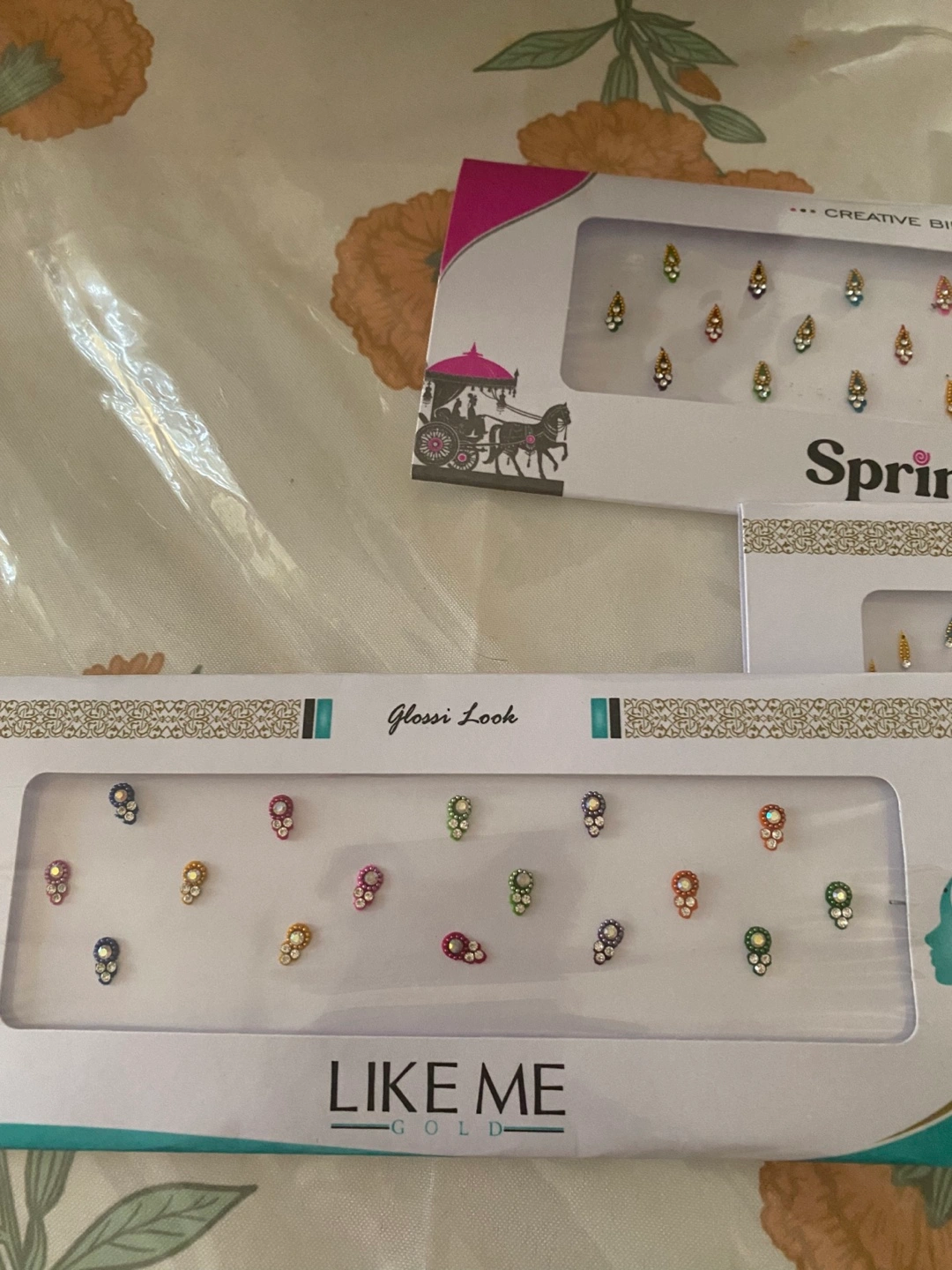 Selling a collection of bindi sets! Includes sets from Like Me (Gold & Glossi Look) and Spring (Creative Bindi). Perfect for adding a touch of sparkle to your look