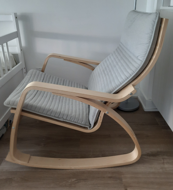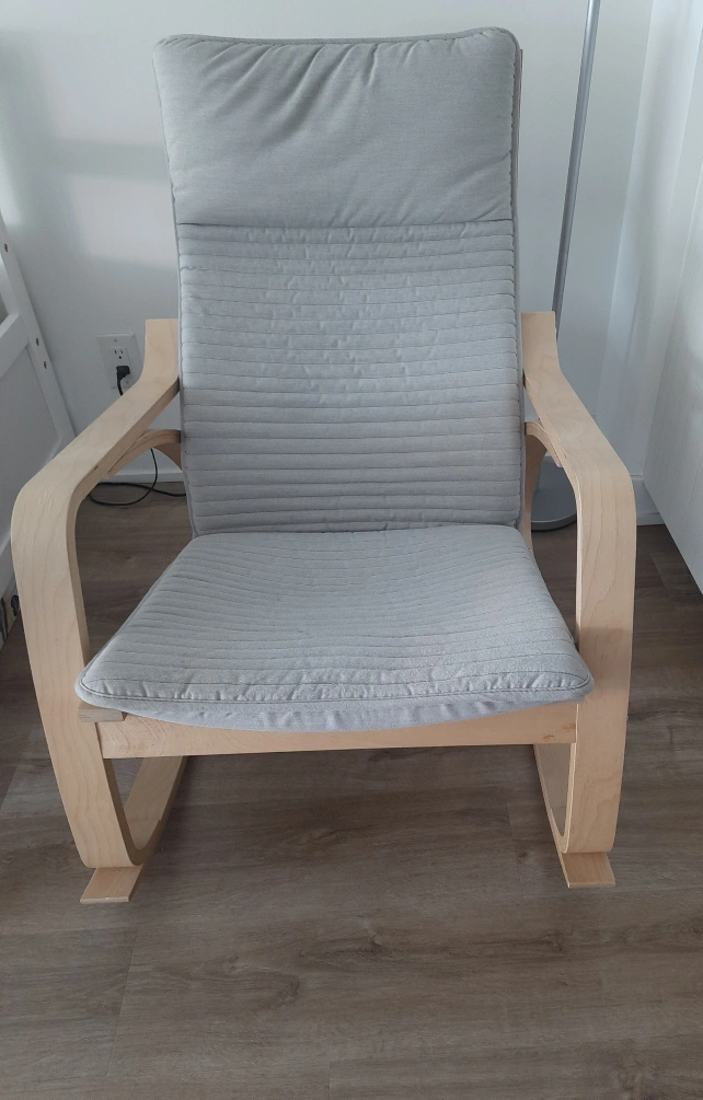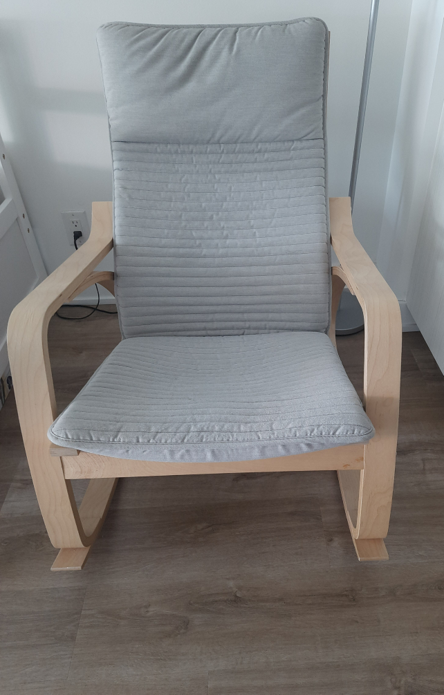 Selling a gently used IKEA POÄNG rocking chair. It features a birch veneer frame and a light beige cushion. Super comfy and in great shape!