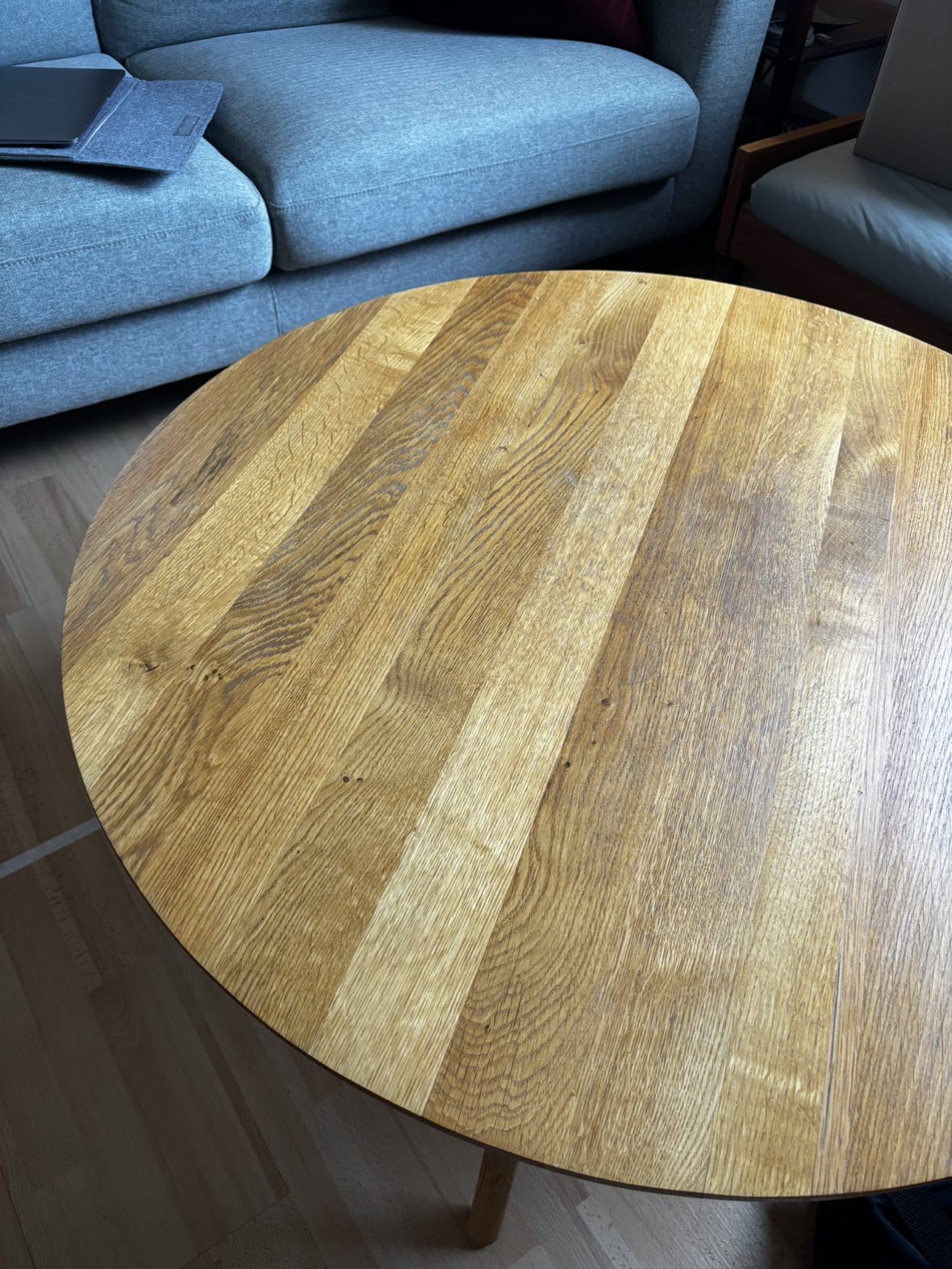 Regularly maintained with wood oil, though has a few marks on top as seen in photo.