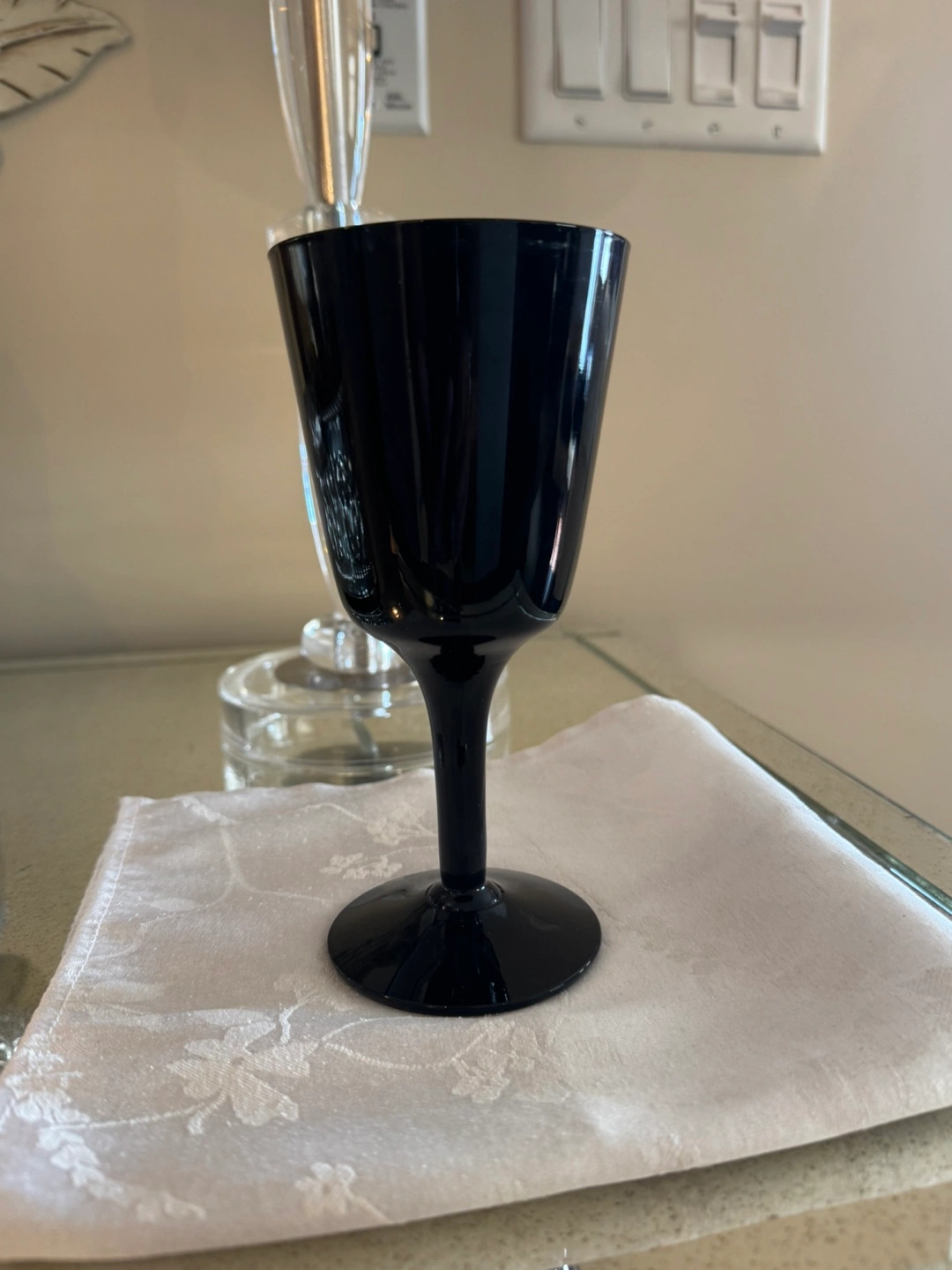 Selling 8 black wine goblets,in great condition and would be a stylish addition to any table setting