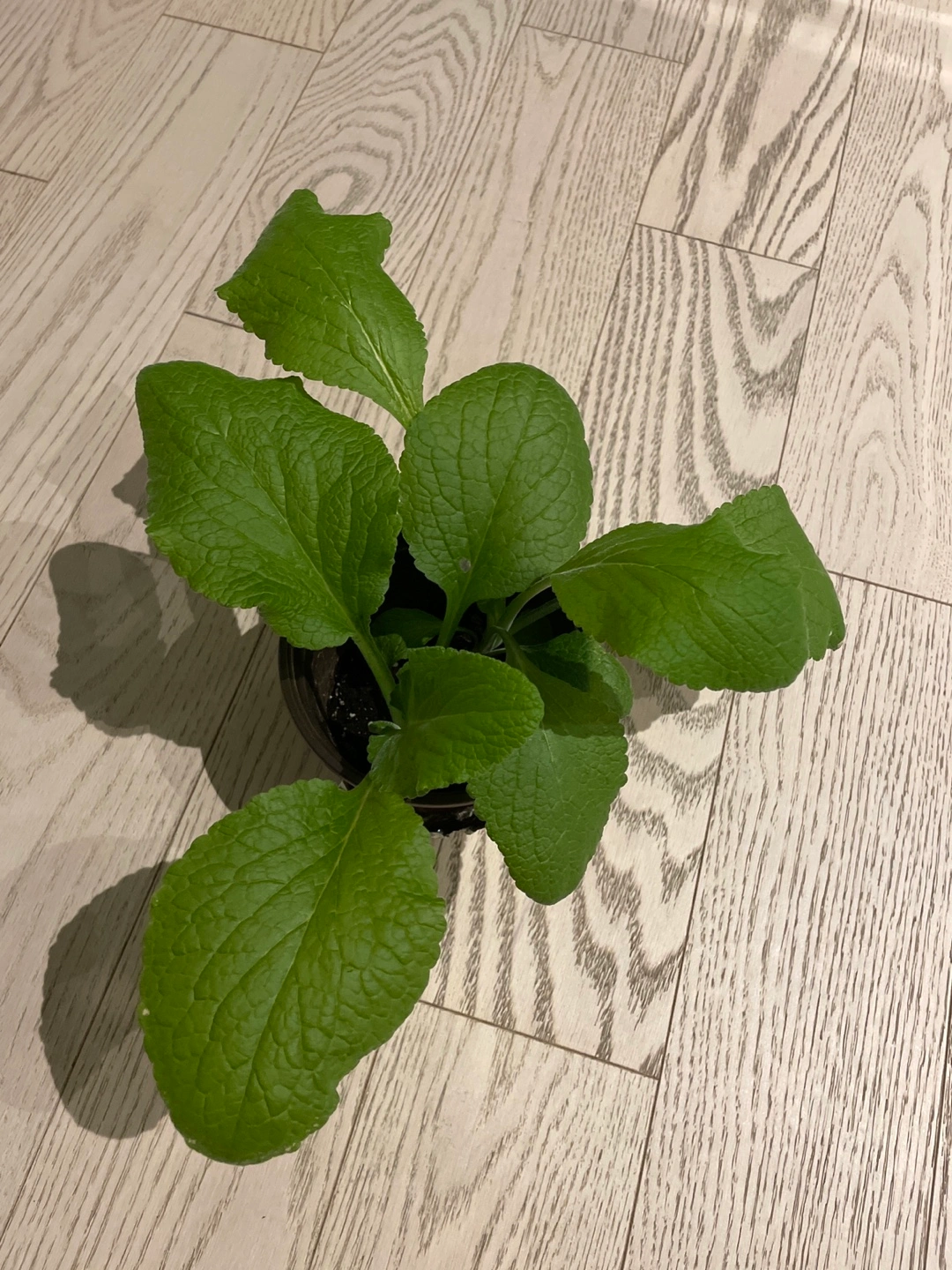 It's 2 foxgloves in a 4 inch pot. They’re easy to take care of and blooms into tall flowers. They’ll grow better if you can repot and give them more space