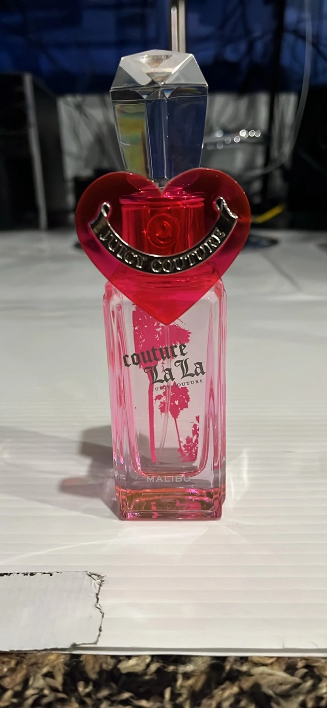 Selling a bottle of Juicy Couture La La Malibu perfume! It's a bright, fruity, and tropical scent with notes of tangerine, green apple, red currant, orange blossom, lily of the valley, magnolia, and musk. It smells like a sunny California beach day with hints of delicate florals and a soft musk base. The box is unavailable, but the perfume hasn’t been used