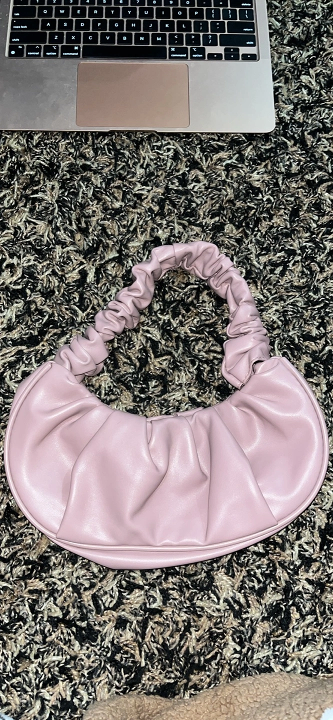Selling a cute pink ruched shoulder bag! It's in great condition and perfect for adding a pop of colour to any outfit. The bag features a unique ruched design and a comfortable shoulder strap. It's a stylish and practical accessory for everyday use. Made from faux leather. Comes from a smoke free and pet free home