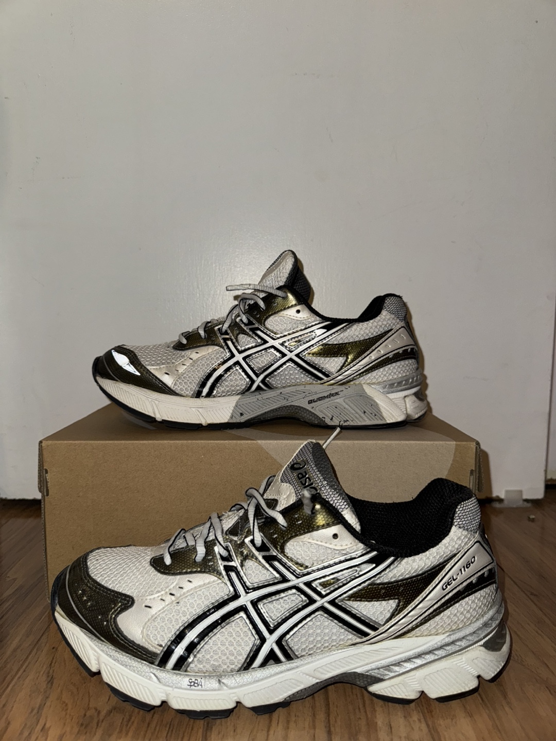 A pair of Asics GEL-1160 (Model has been discontinued)for Size 7 Woman or 5.5 Men running/casual shoes. They've been used, but still have lots of life left in them for running or everyday wear! I have freshened them up recently.
