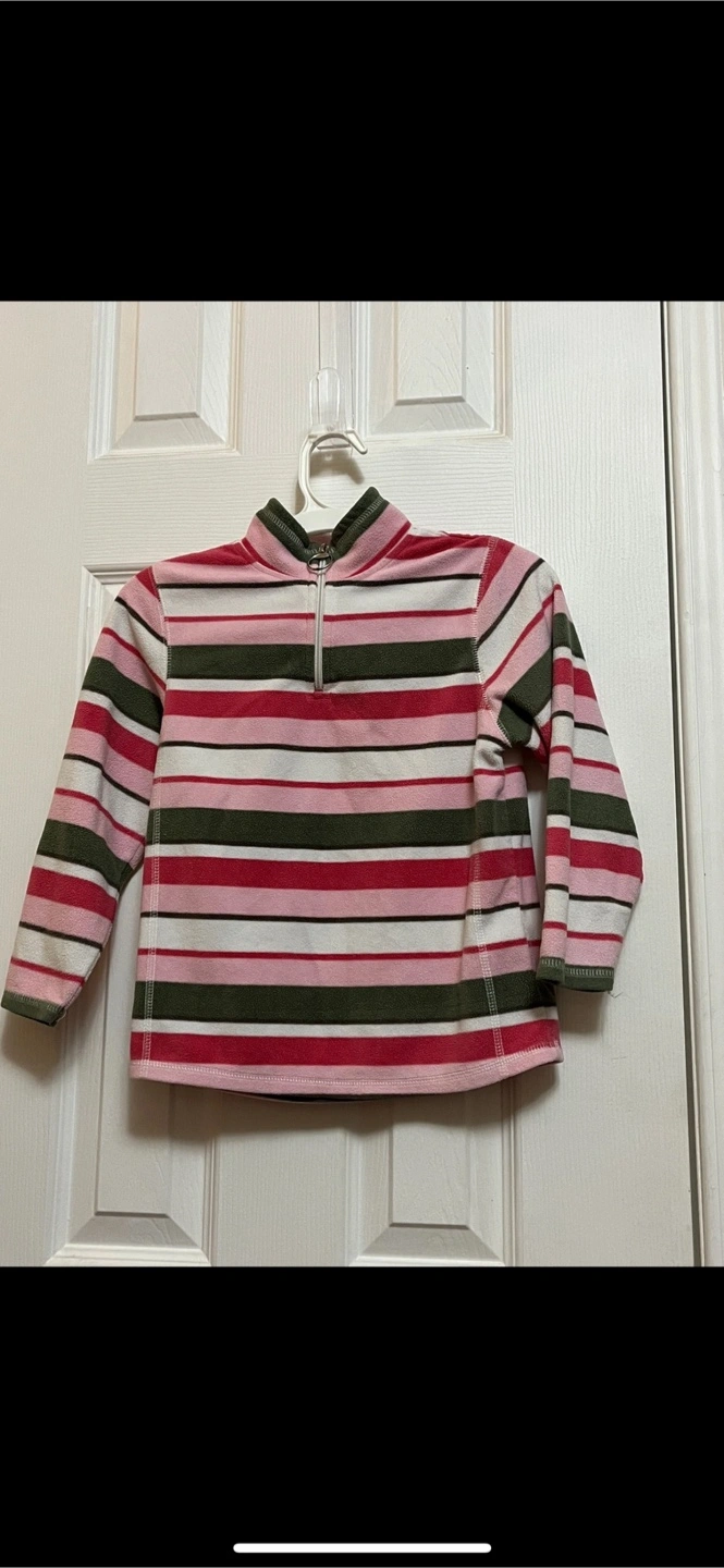 Cozy striped fleece pullover, perfect for keeping your little one warm! It features a quarter-zip closure and a comfortable fit. The size is 5/6. Great for layering or wearing on its own during cooler days