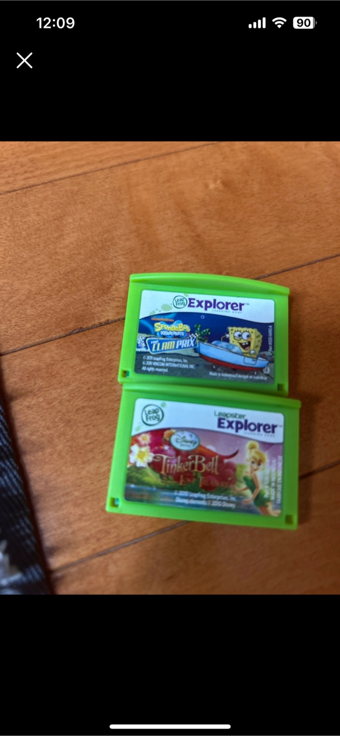 1 / 11 / 1Buy & SellLeapFrog Explorer Game CartridgesLeapFrog Explorer Game CartridgesFreeTwo LeapFrog Explorer game cartridges for sale! One is Spongebob Squarepants themed and the other is TinkerbellWHERE TO MEETSquare oneView MapSELLERverifiedKPMRathwood61251 reviews0 chats·0 favorites·12 viewsSEND CHAT TO SELLERHi KPM! I’m interested in your listing.Hi KPM! I’m interested in your listing.Get the Karrot app to chatSign In to chat