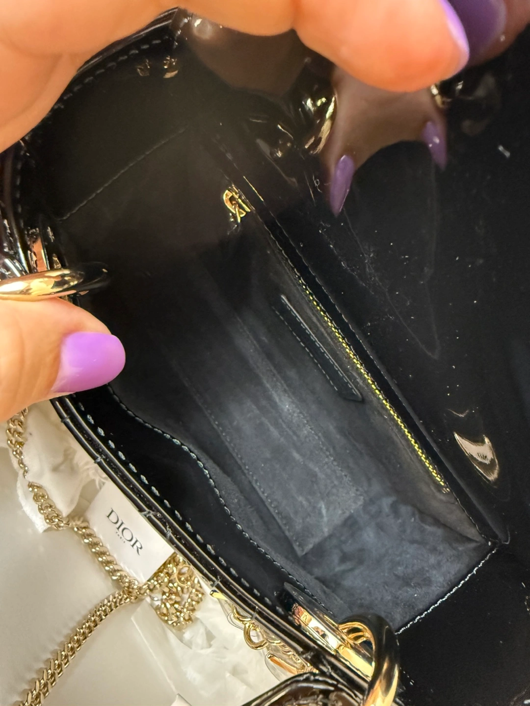Brand new full set Lady Dior Mini black patent gold hardware