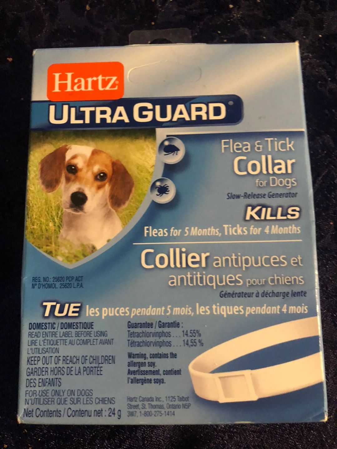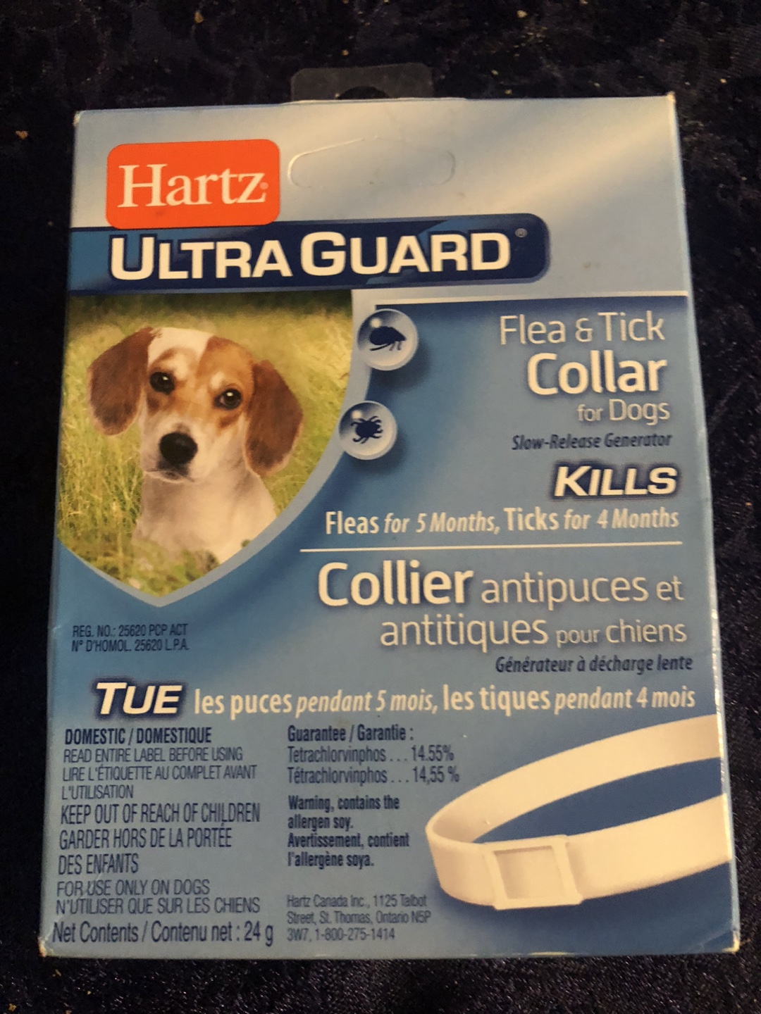 Unopened Hartz UltraGuard Flea & Tick Collar! This slow-release generator kills fleas for 5 months and ticks for 4 months. Perfect for dogs, this collar provides effective flea and tick control, helping to keep your pet healthy and comfortable