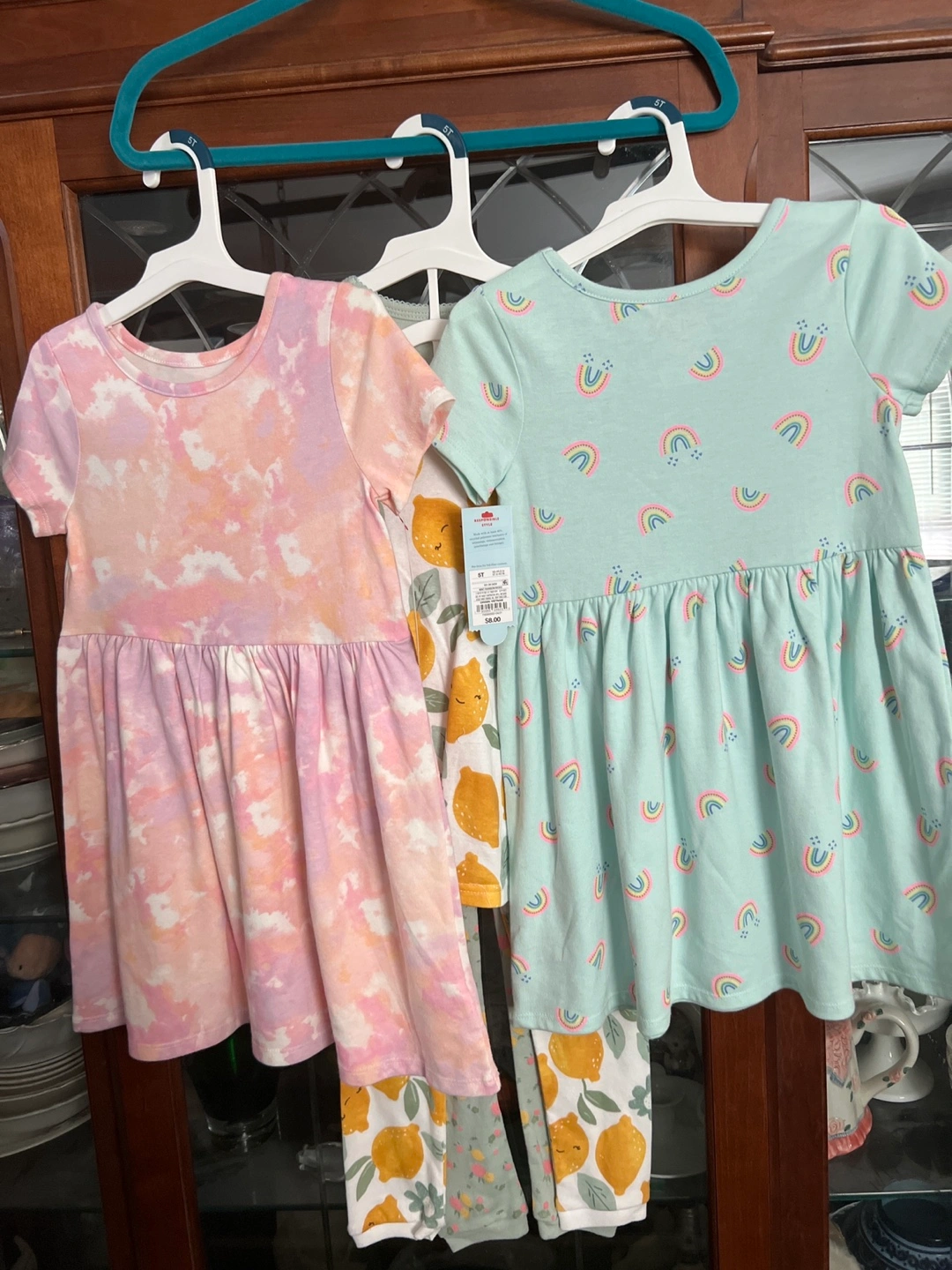 Brand new dresses retail at $8 each & the 2 pair pj set retails at $16
