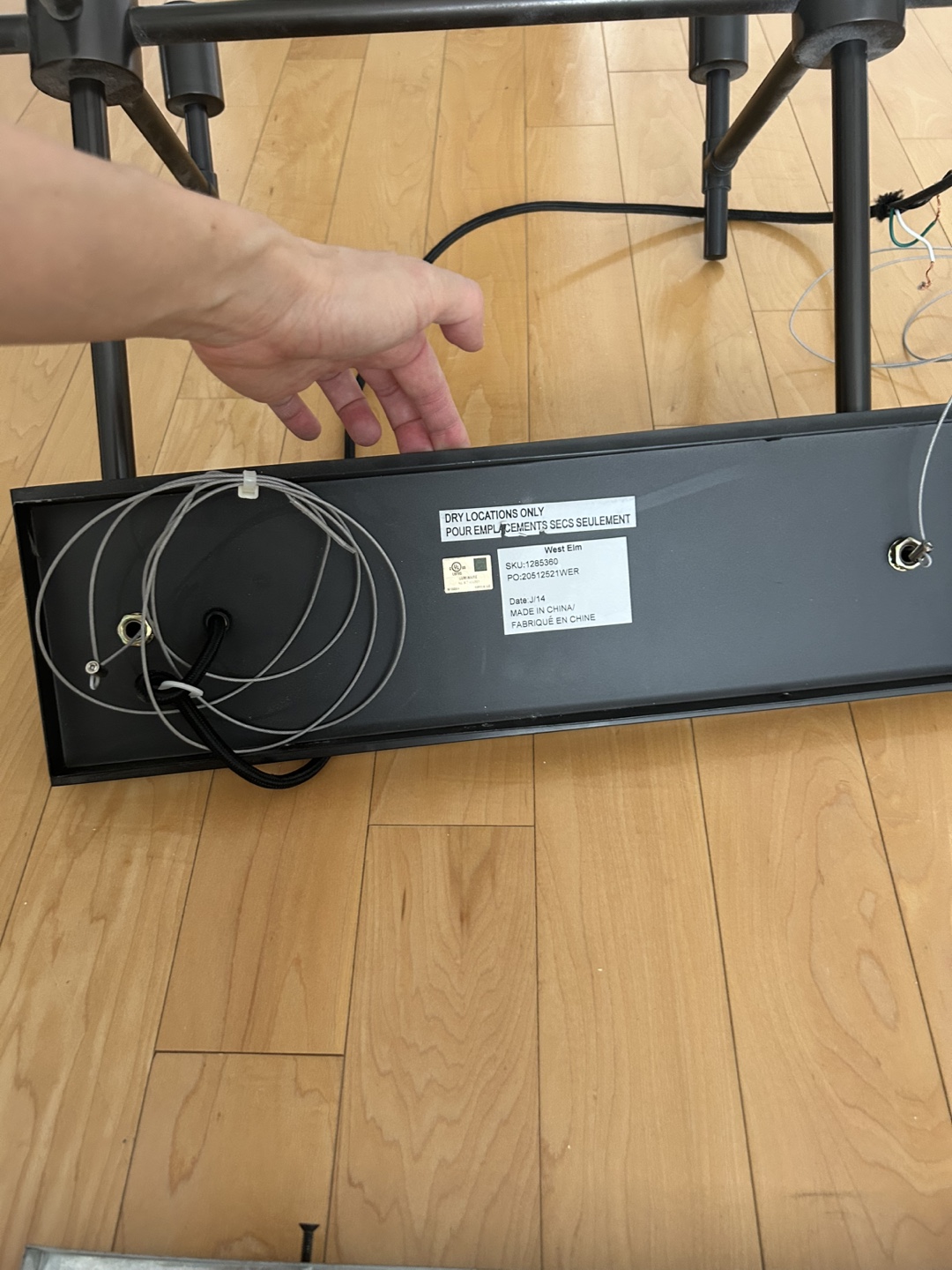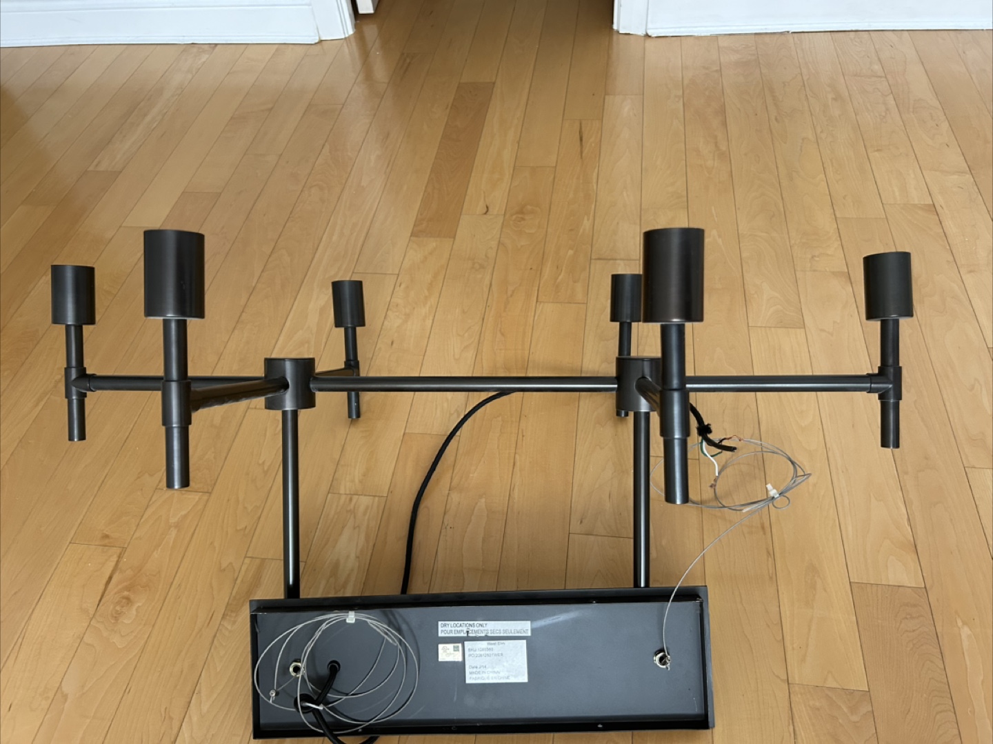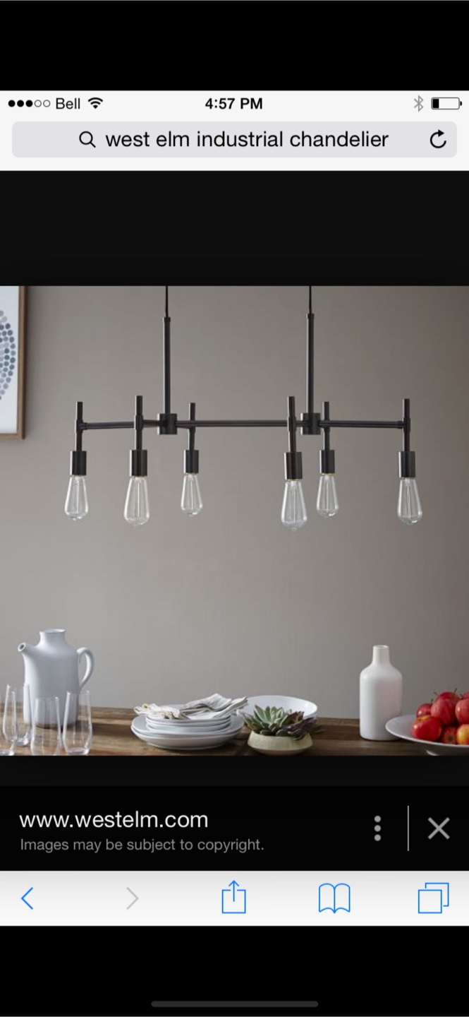 West Elm industrial chandelier. Perfect for adding a modern touch to any room.