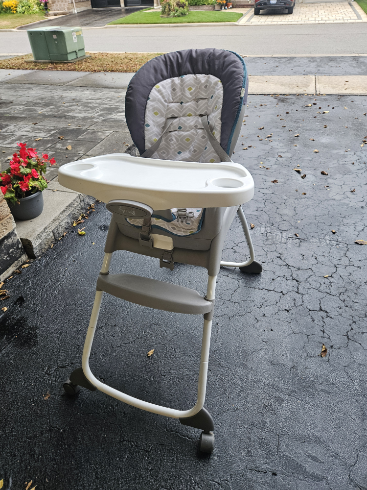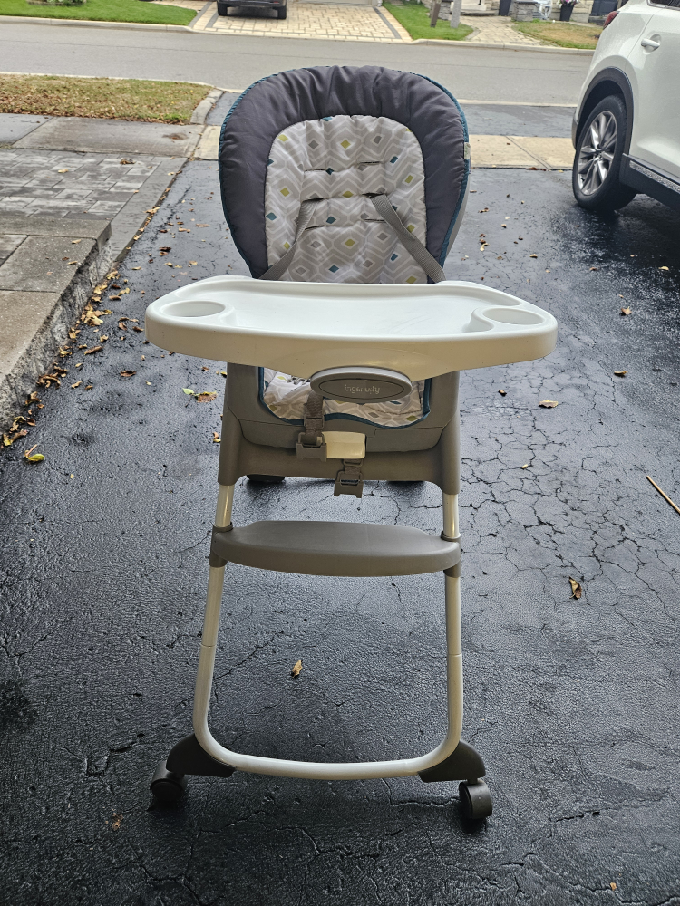 Ingenuity baby high chair, perfect for meal times! It's in great shape and ready for a new home. The chair features a comfortable seat and a convenient tray for easy feeding