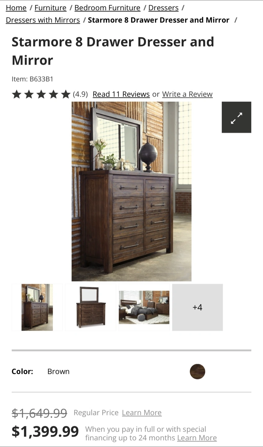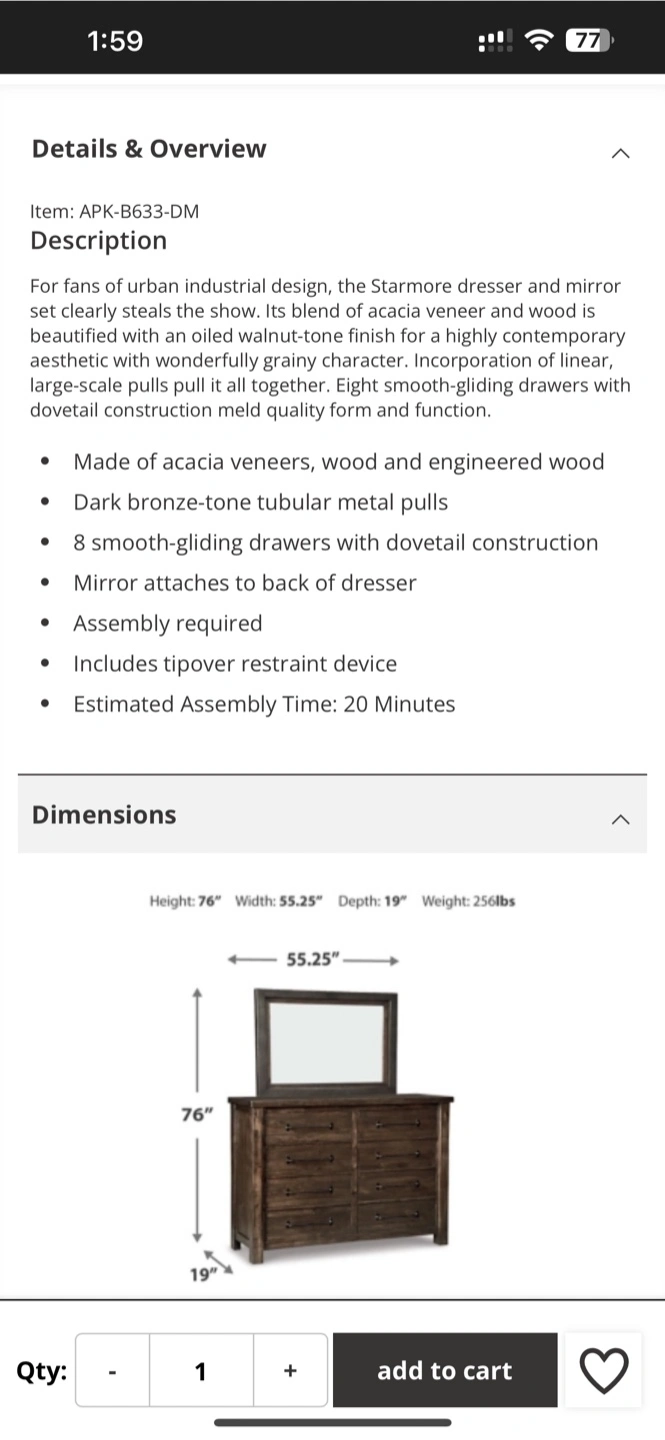 - Mirror attaches to back of dresser
