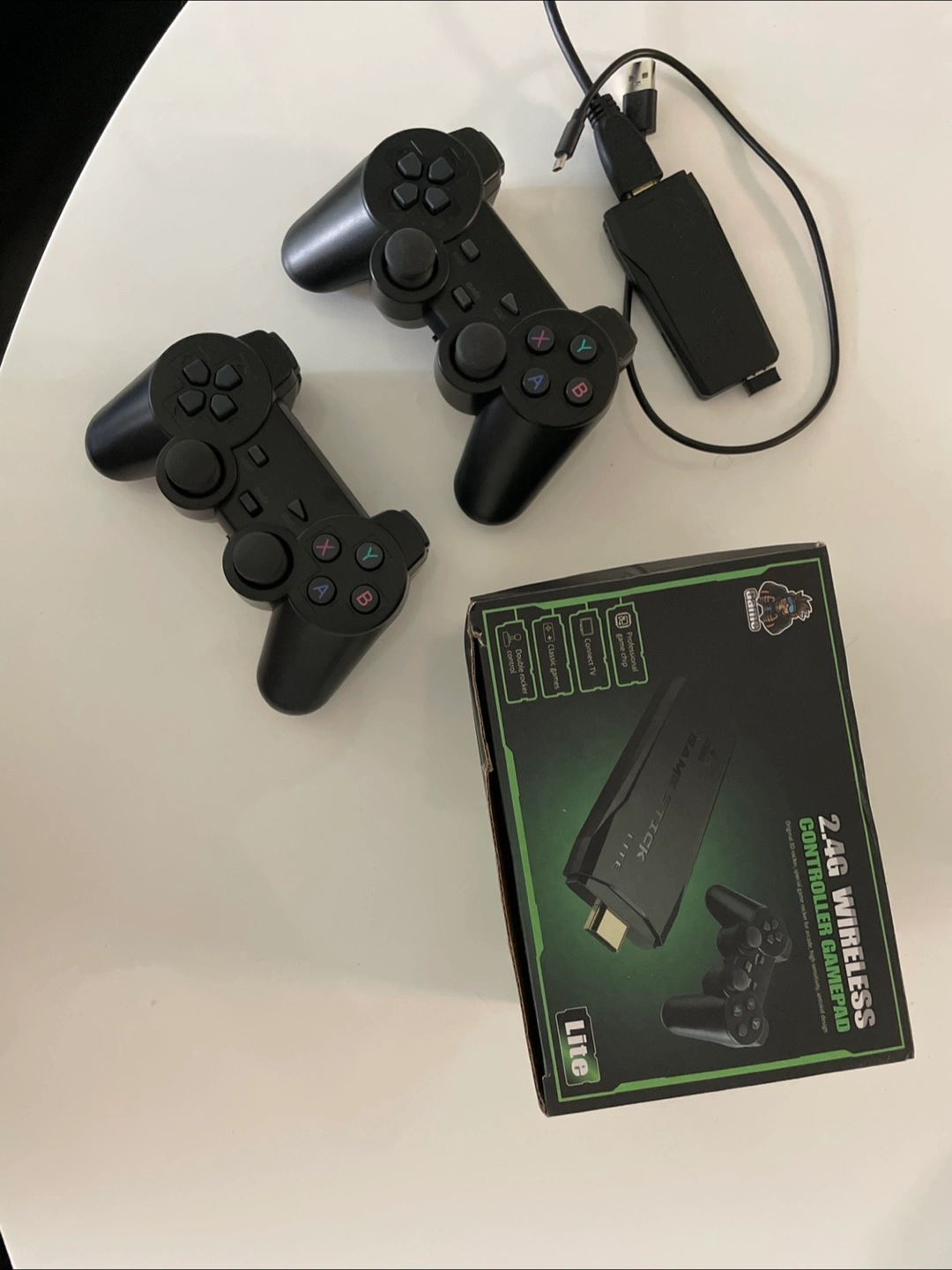 Selling a Game Stick Lite with 2.4G wireless controllers! It comes with two controllers and the box.
