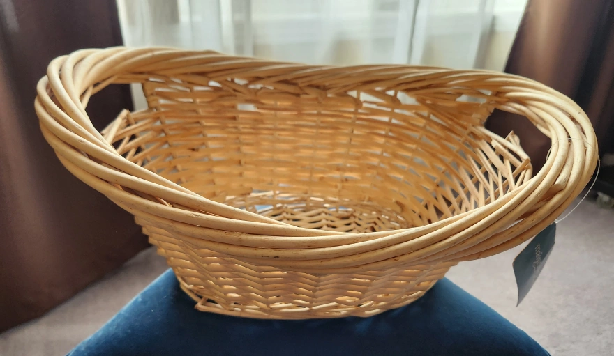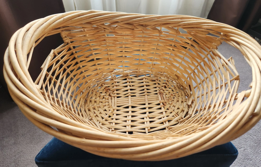 Here's a woven wicker basket, perfect for storage, decor, or making a gift basket! It's in great shape and ready for a new home
