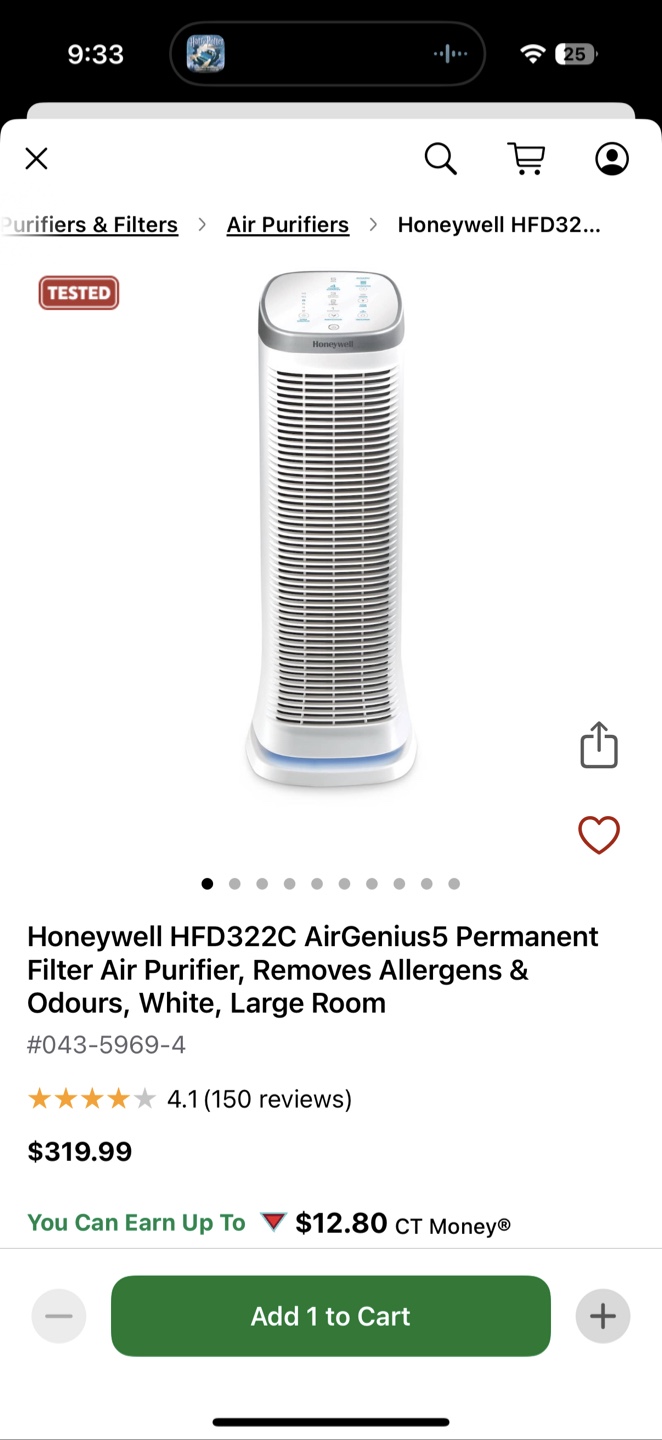 Selling a Honeywell HFD322C AirGenius 5 Permanent Filter Air Purifier! It removes allergens and odours, perfect for a large room. Retails for $319.99. It also has an Energy Star rating, so it's energy efficient.