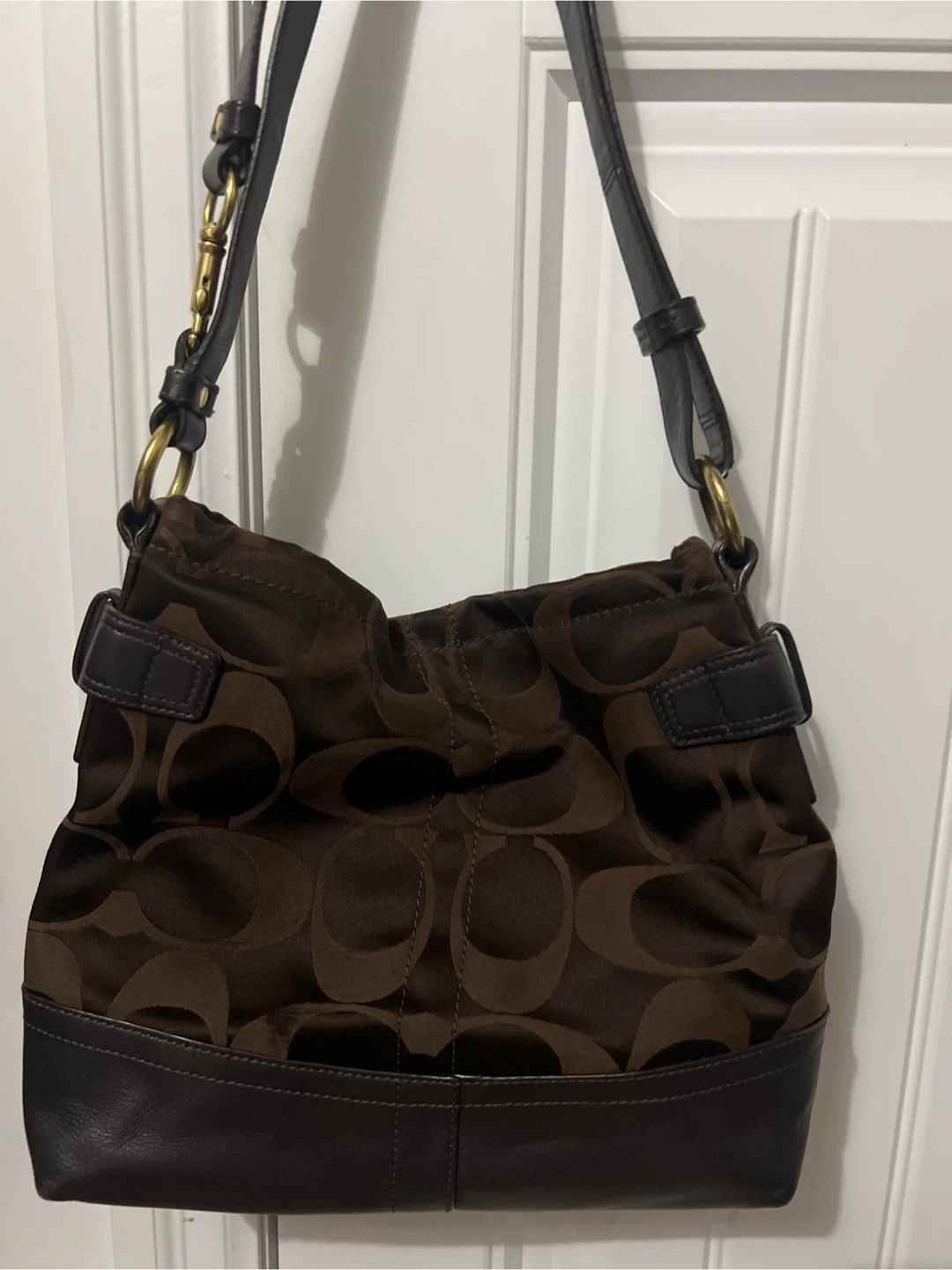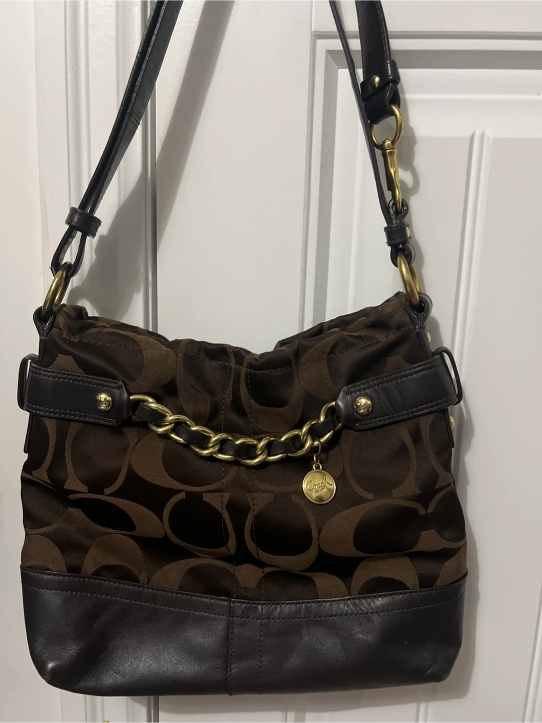 Selling a Coach hobo bag in a lovely brown signature pattern! It's in great condition and ready for a new home. Perfect for everyday use or a night out