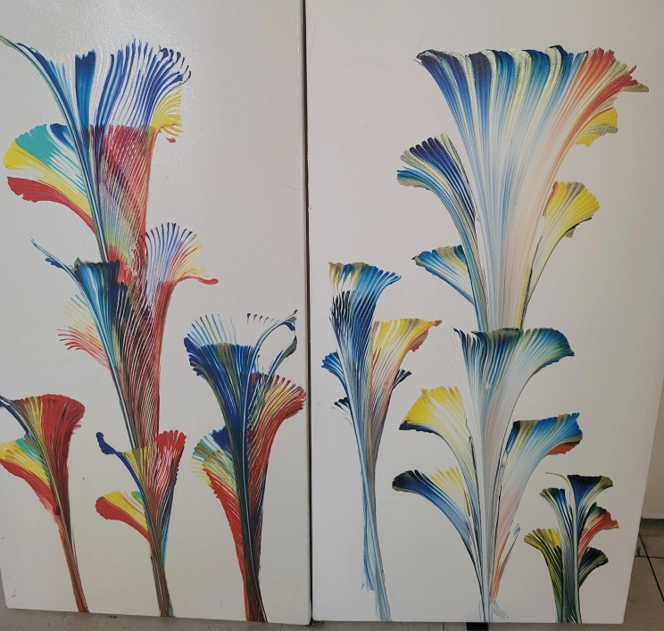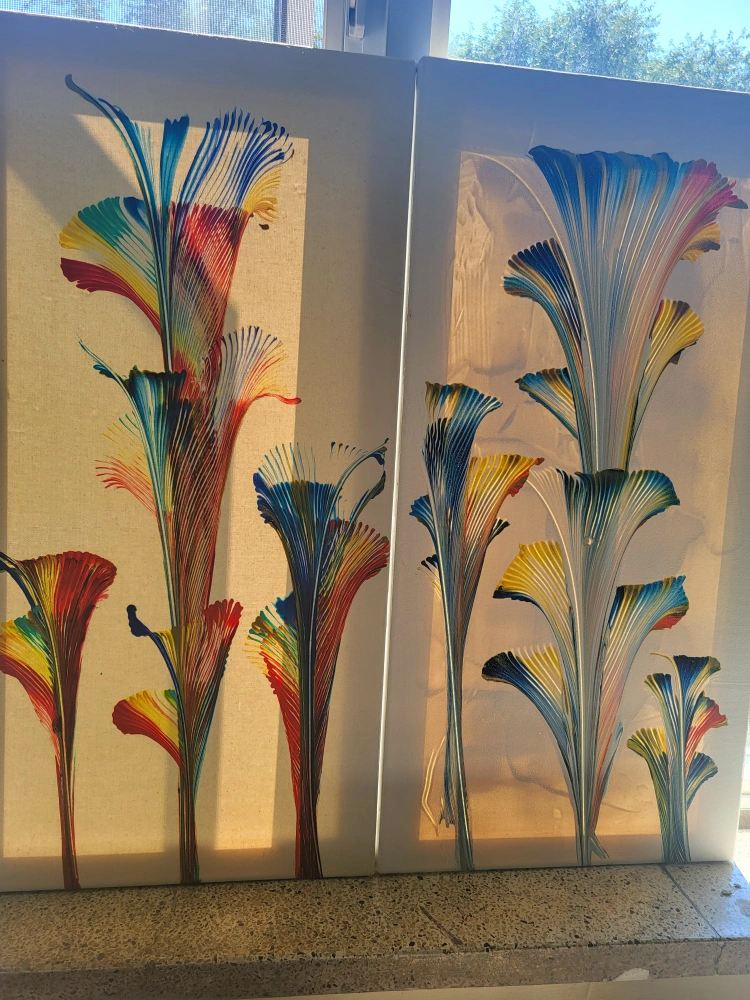 beautiful floral acrylic pour paintings on canvas! The vibrant colours and unique design make it a standout piece. It would look great in any room.