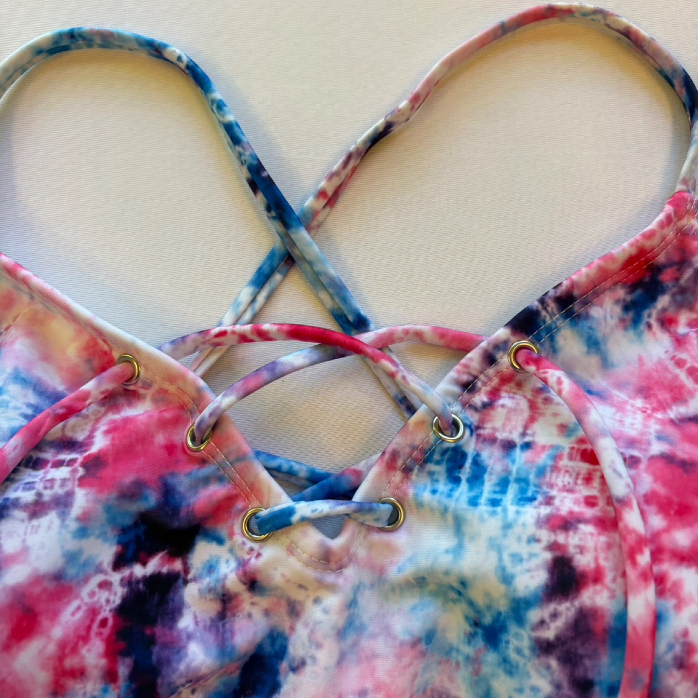 Ardene Lace Up Colorful Tie Dye Bikini Swimsuit Top Size S