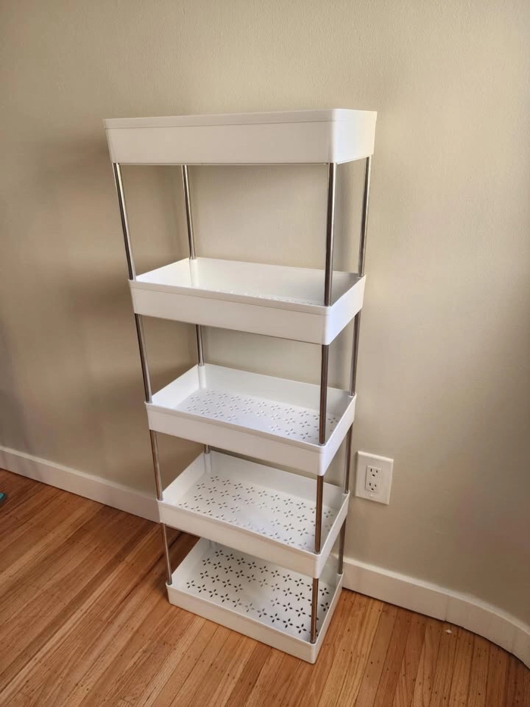 Buy & Sell5-Tier Storage Shelf (+ wheels)5-Tier Storage Shelf (+ wheels)$255-Tier Storage Shelf for Sale Sturdy, lightweight, and clean. Message if interested!Dimensions15x9x45 inchWHERE TO MEETBurrard and Robson stView MapSELLERJennyDowntown Vancouver12312 reviews2 chats·2 favorites·84 viewsSEND CHAT TO SELLERHi Jenny! I’m interested in your listing.Hi Jenny! I’m interested in your listing.Get the Karrot app to chatSign In to chat