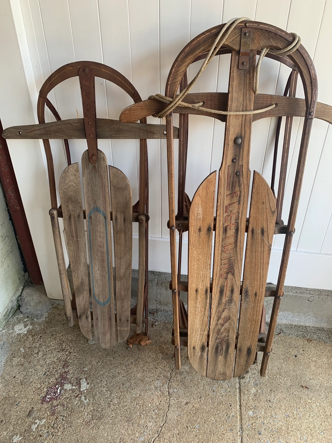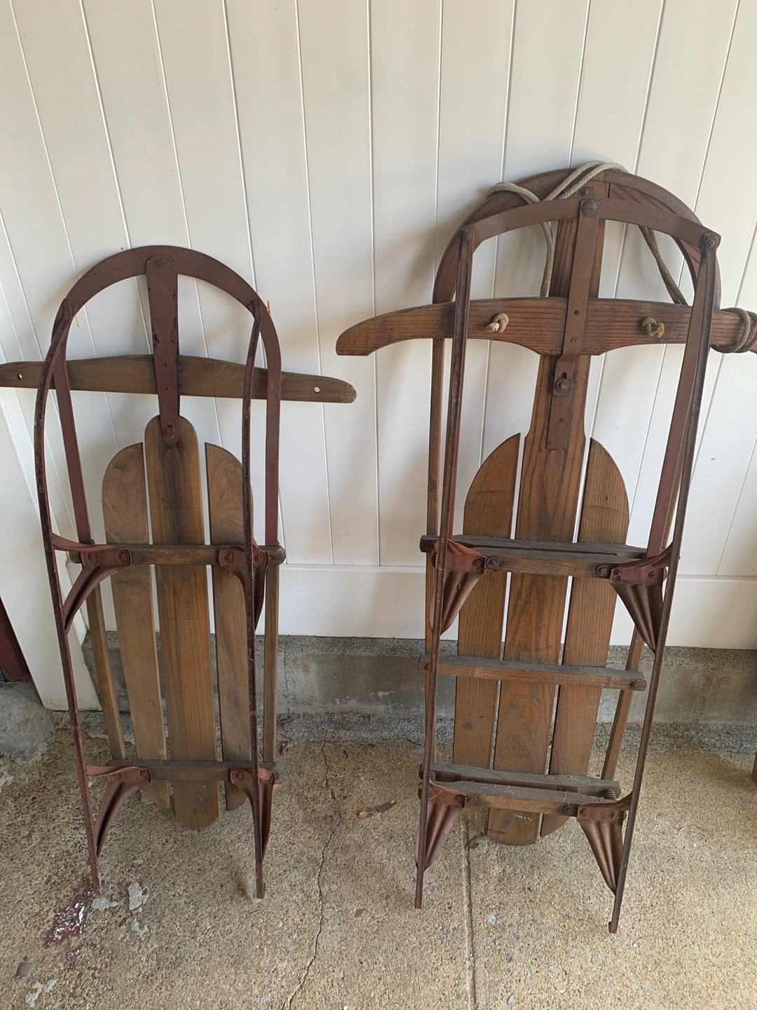 15Selling a set of two vintage wooden sleds. They're both in good condition for their age and would make a great decorative piece or could be used for some winter fun! They have a rustic charm and unique character