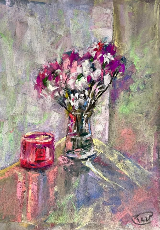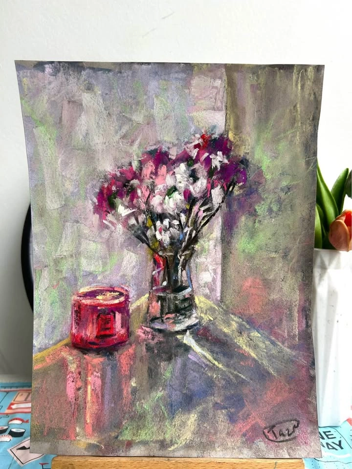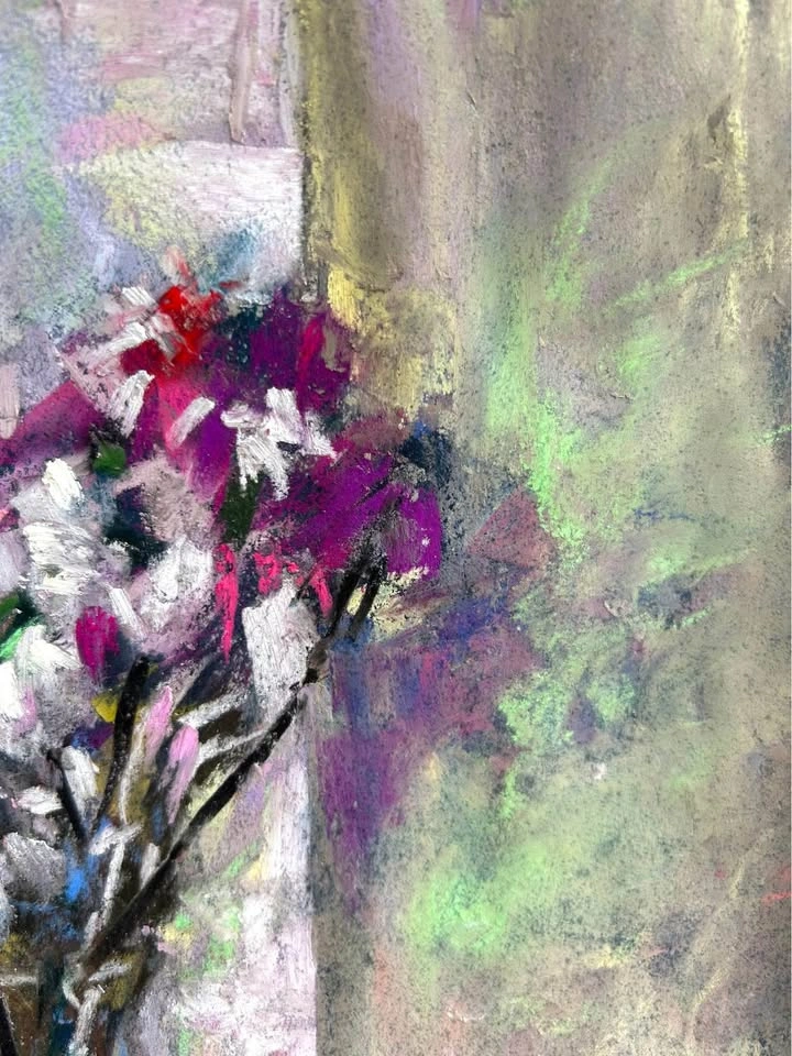 "Soft Glow" 9 x 12 inches Pastel on toned paper. This is an original pastel painting. It will be handed over to you unframed, protected with glassine paper between two boards. Frame is not included, but I will supply framing suggestions if needed. Pickup in Surrey near King George station.